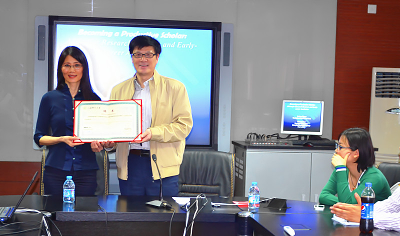 在讲座开始前,夏惠贤院长代表教育学院聘请张丽芳教授担任 “客座教授”,并颁发了聘书,期望她能多给教育学院的师生传经送宝。