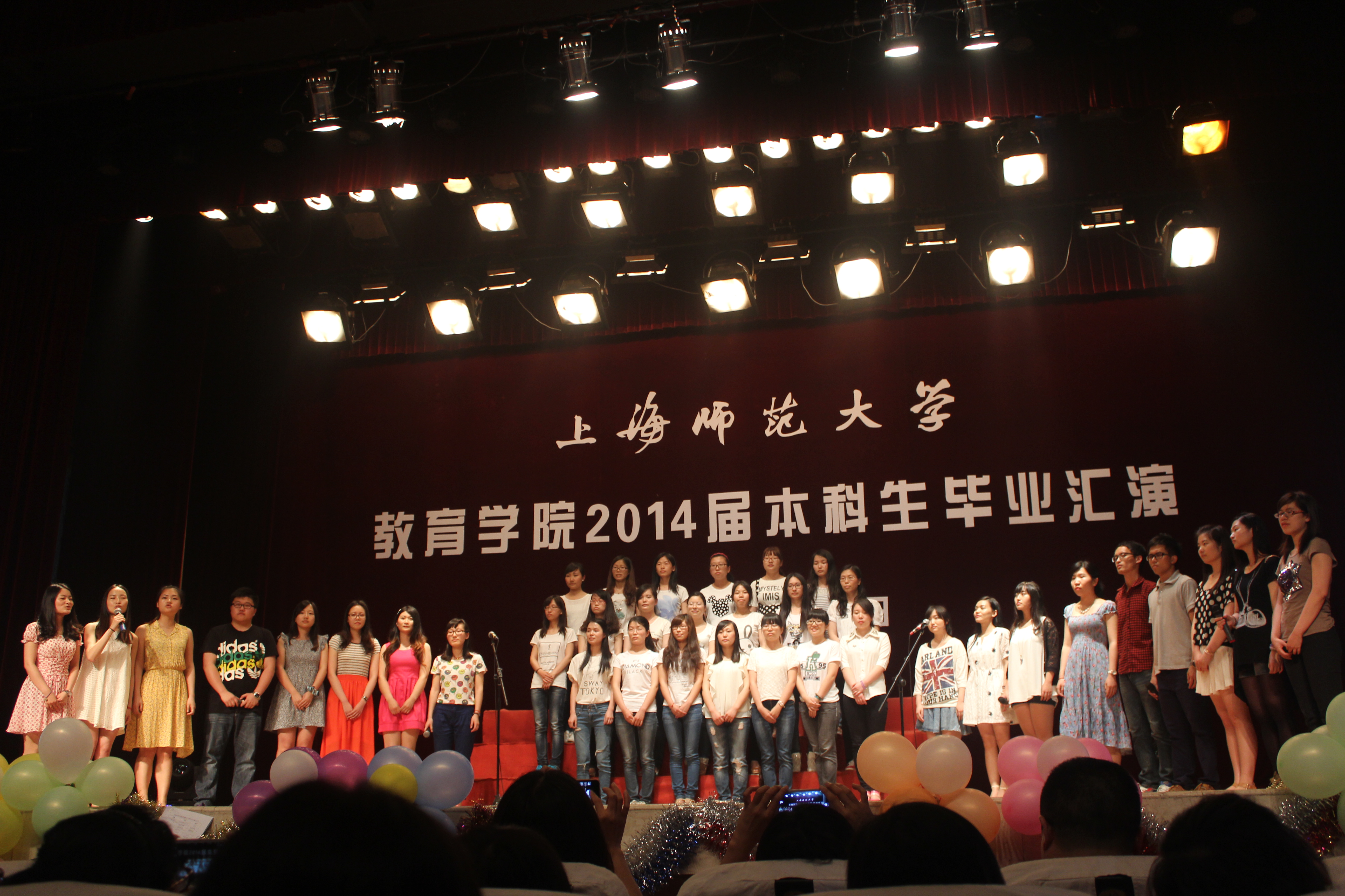 5月29日下午,教育学院2014届本科生毕业汇演在徐汇东部礼堂拉开帷幕。教育学院党委书记周银娥、党委副书记副院长谢青,各专业教师、部分学生家长及全体毕业生观看了此次汇演。大家欢聚一堂,欣赏了由各个班级精心编排的精彩节目。