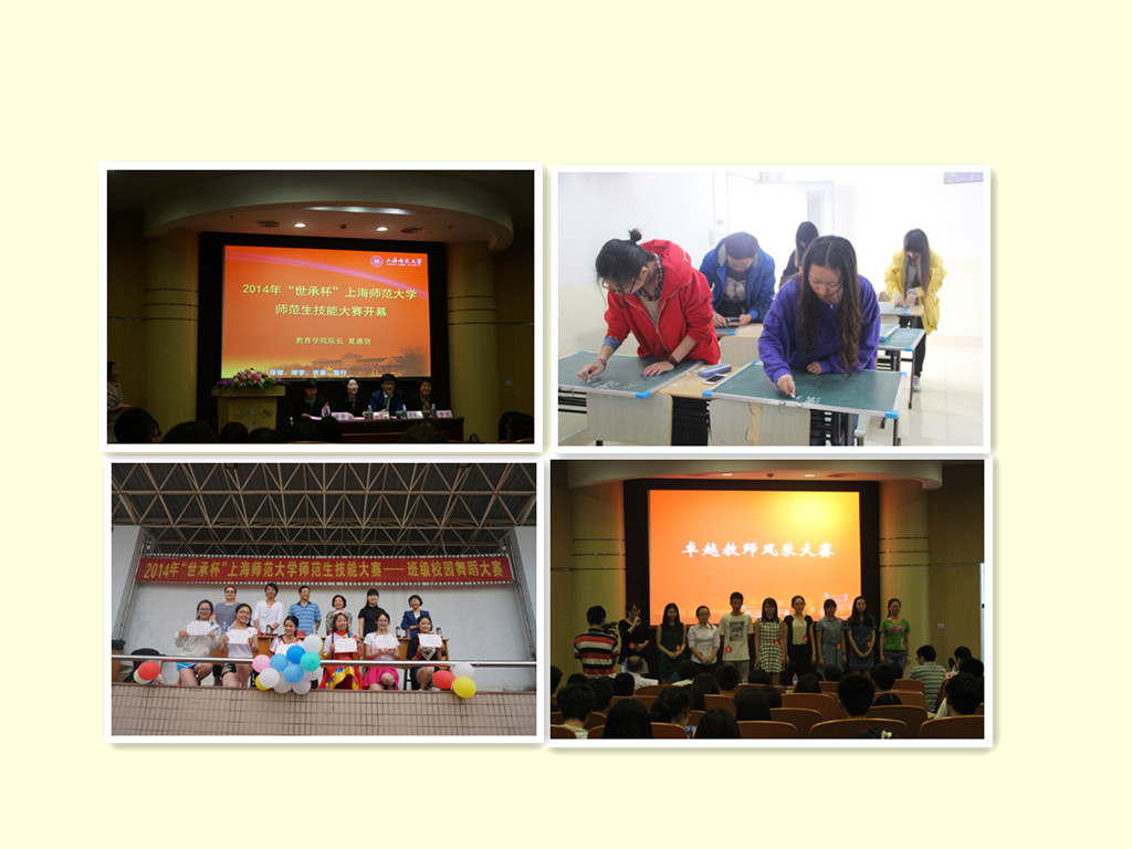 “世承杯”上海师范大学师范生技能大赛是加强师范生德育实践的重要活动,也是“085”建设子项目师范生“德育实践创新基地”的重要内容之一。本次大赛吸取以往经验,并在加强全员参与、深化师德内涵等方面进行了进一步的探索和实践。大赛开展“班主任德育讲坛”系列讲座、“优秀师范生寻访名师校友”活动,通过生动的讲座和访谈的互动,让师范生体会“爱教育、爱学生、重品行”的教育理念,感受教育名家的职业理想和精神追求;同时通过开展粉笔字比赛、多媒体课件比赛、微格教学比赛、班级校园舞蹈大赛、卓越师范生大赛等系列活动,进一步增强师范生的综合素质和就业竞争力,帮助我校师范生进一步认识到提升教师基本功与加强教学技能的重要性,为未来教师展示青春风采搭建了良好平台,夯实我校师范生专业素养和职业能力。