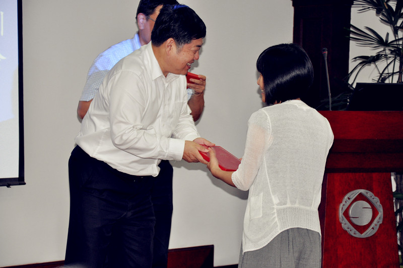 图2.张民选教授为优秀教师颁发教育硕士导师聘书
