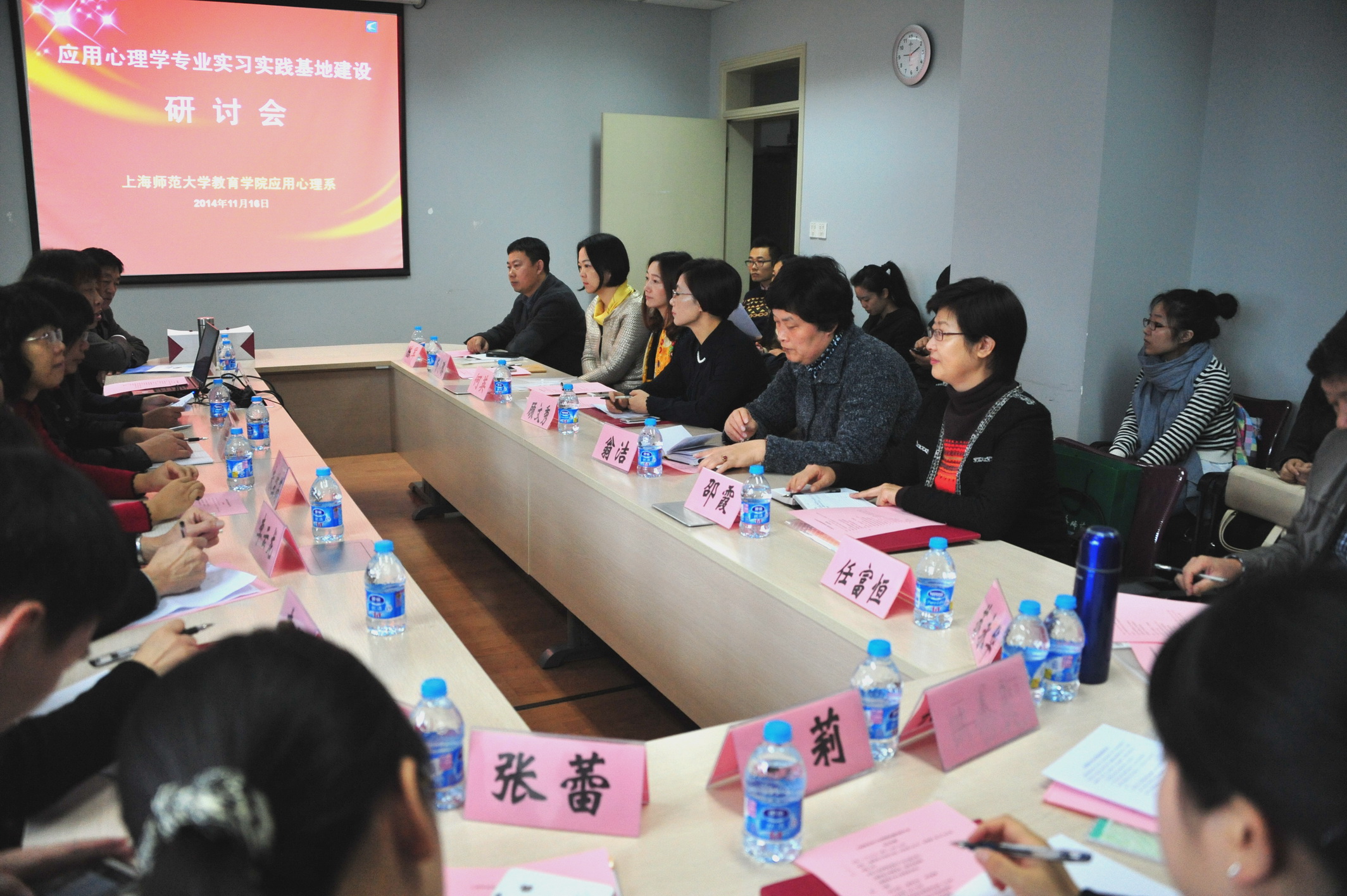 11月16日上午9:00,教育学院心理系主办的“应用心理专业实习实践基地建设研讨会”在我校教苑楼704会议室顺利召开。研讨会由心理系主任李丹教授主持,应邀出席的嘉宾包括诺姆四达集团总裁苏永华、中国EAP服务中心总裁畅小璐、上海心仪电子科技有限公司总经理陈军、上海市精卫中心副主任李云龙、浦兴中学校长任富恒、上海市儿童福利院副院长凌伟、上海女子强制隔离戒毒所副所长邵霞、上海长征医院医师陆莉等十五位实习基地代表。我校教务处彭锦辉老师、心理系应用心理学科带头人石文典教授、心理系副主任刘俊升教授以及部分心理系教师和实习生代表参加了会议。