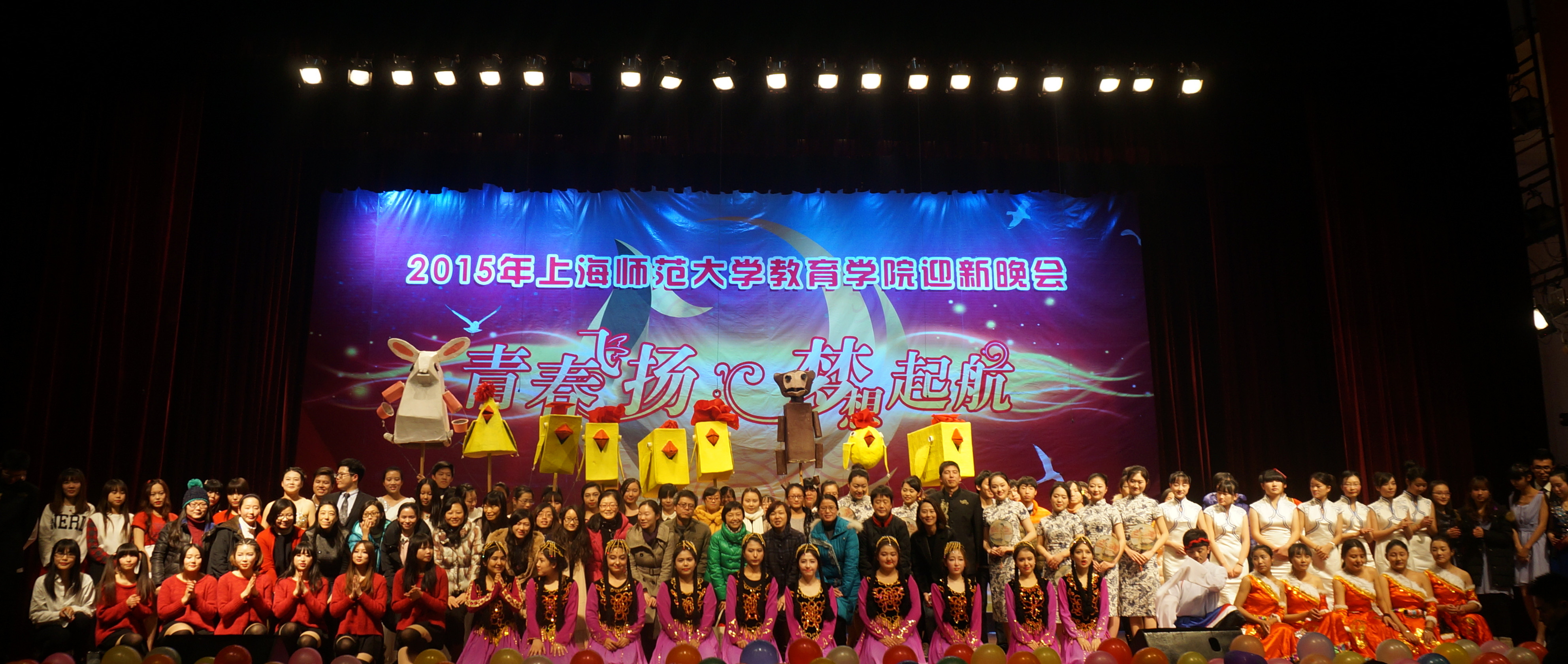 2014年12月24日,我院“教相辉映 育德馨章”2015年本科生迎新晚会于奉贤校区上师大剧院隆重举行。莅临本次晚会的嘉宾有校学工部副部长柏桦老师,校团委副书记万瑾老师,校团委副书记傅昕源老师,教育学院党委书记周银娥老师,教育学院副院长吴念阳老师,教育学院党委副书记、副院长谢青老师,教育学院办公室副主任张裕萍老师。