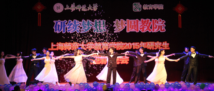 2014年12月25日下午六点,教育学院研究生会主办的“研续梦想,梦圆教院”迎新晚会在学校东部礼堂隆重举行。晚会很荣幸邀请到原上海师范大学校长杨德广教授和张民选教授亲临现场观摩。学院领导出席的有党委书记周银娥老师,院长夏惠贤老师,副书记、副院长谢青老师,副院长胡国勇老师,副院长徐雄伟老师,副院长吴念阳老师以及学院各科系各专业、各部门负责人及导师共计40多位老师出席了本次晚会。