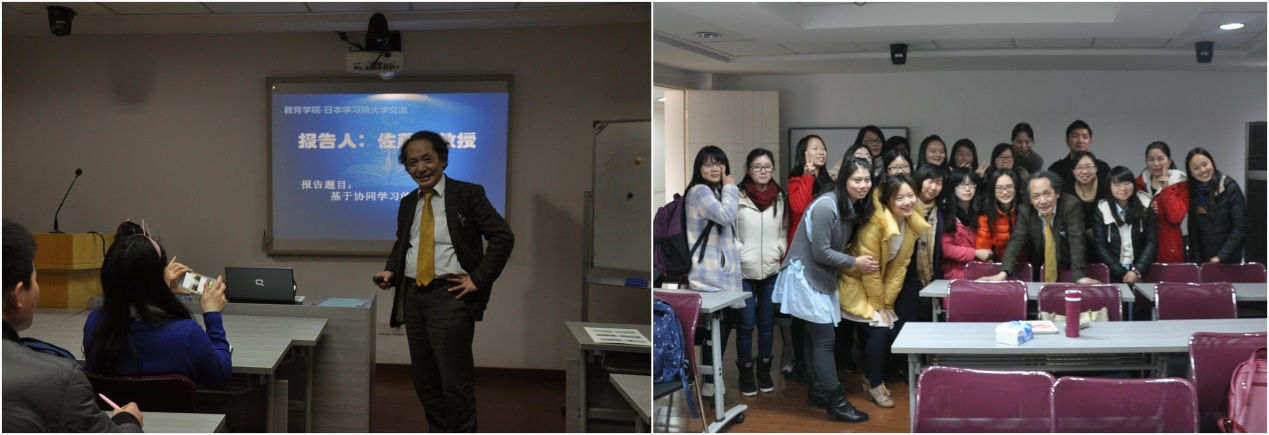 下午,佐藤学教授为我院师生做了题为《基于协同学习的教学改革》的讲座,生动幽默地讲解了“学习共同体”理论,分析了小组学习如何成为有效的“协同学习”,并提出了建立学习共和国的构想和亚洲地区教育合作的愿景。其后,久保田福美教授组织中日学生开展了丰富多彩的交流互动,中日学生分享了“为何想成为小学教师”、“成为怎样的小学教师”等想法。