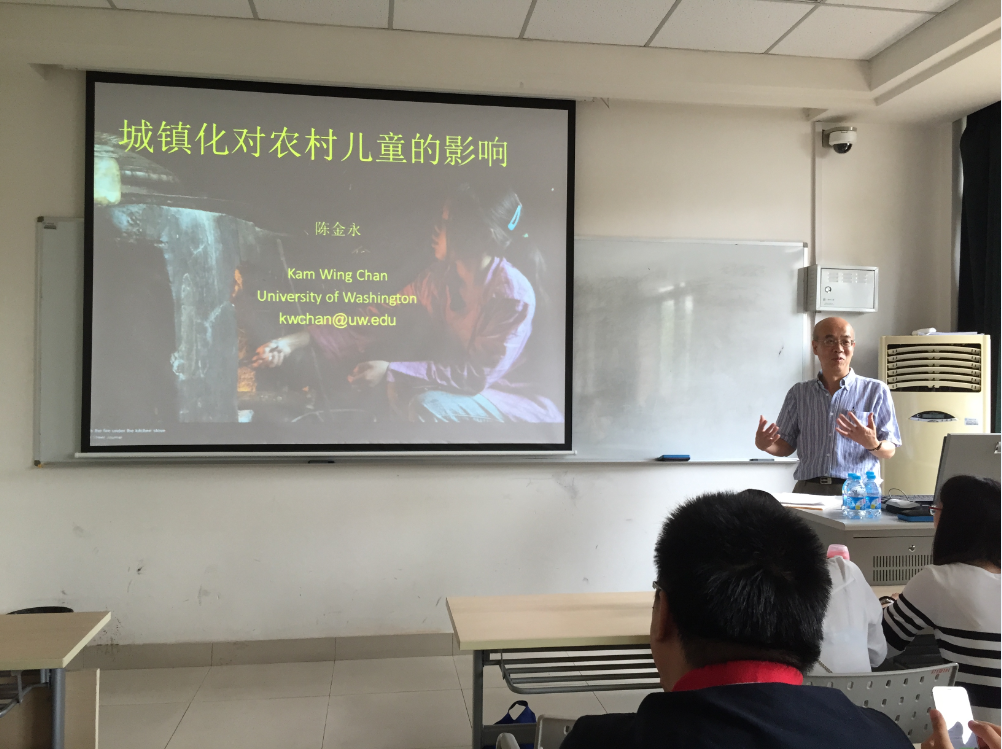 2015年9月18日下午一点,美国华盛顿大学陈金永(Kam Wing Chan)教授在我校四教107室举办了以“城镇化对农村儿童的影响”为题的讲座。本次讲座由我院初等教育系吴艳老师主持,本讲座旨在通过人口分布情况,城镇化的角度来探讨农村儿童的生存和教育问题。
