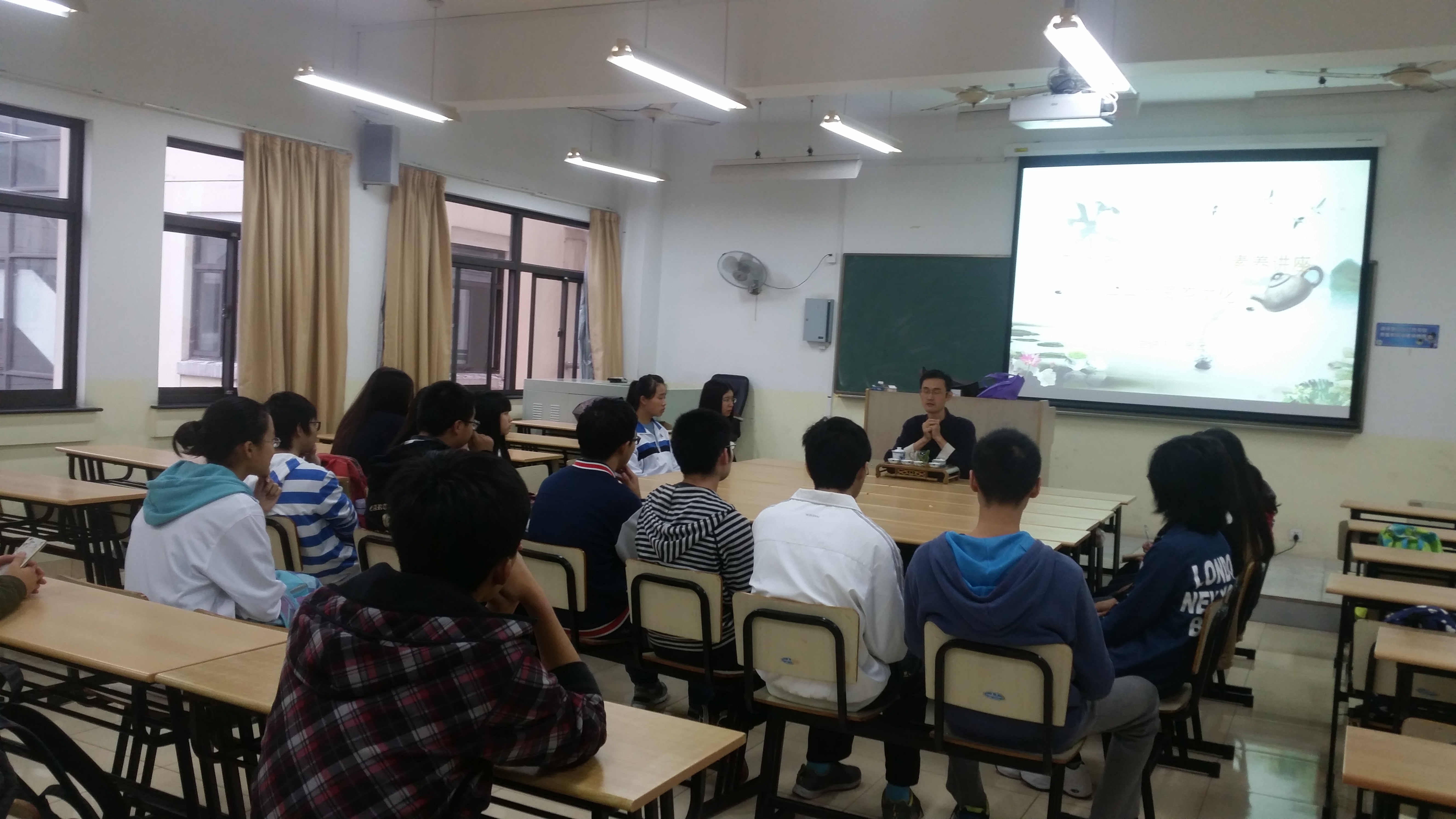 为了帮助同学们能够更加直观地体会国学礼仪,张老师还结合传统茶道,带领同学们从国艺中深入领悟传统文化的博大精深。他从茶文化的起源与茶文化的传承发展向同学们详细介绍了中国的茶道文化。在张云老师的茶艺展示过程中,同学们在安静祥和的氛围中深切感受到了“一茶一世界,一叶一人生”的境界,一杯在手,名利皆忘。在有了切身感受之后,张老师给大家讲解茶道中的“乾坤”。他指出对于茶而言只有静下心来去品尝,才能尝出茶中的甘甜;正如人生,我们经常不知所措地忙碌着,人生的意义并不是如此,只有真正静下心来,才能品味出人生中的种种真谛,恰如《大学》中所述“静而后能安,安而后能虑,虑而后能得”。