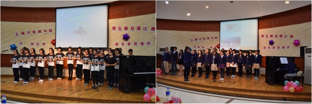 为了在大学生中开展爱国主义教育,弘扬社会主义核心价值观,2015年11月11日下午两点,“师展激扬青春,唱享爱国情怀”第五届教育学院合唱比赛在奉贤校区大学生活动中心顺利开展。我院本科一年级13个行政班级积极备赛、全员参与。此次大赛的评委有学院学前教育系陈敏燕老师,15级小教与公管专业辅导员胡斌老师,14级小教与教育学专业辅导员许义老师,学院学生会主席顾磊,上届学院学生会文艺部部长盛丹妮。