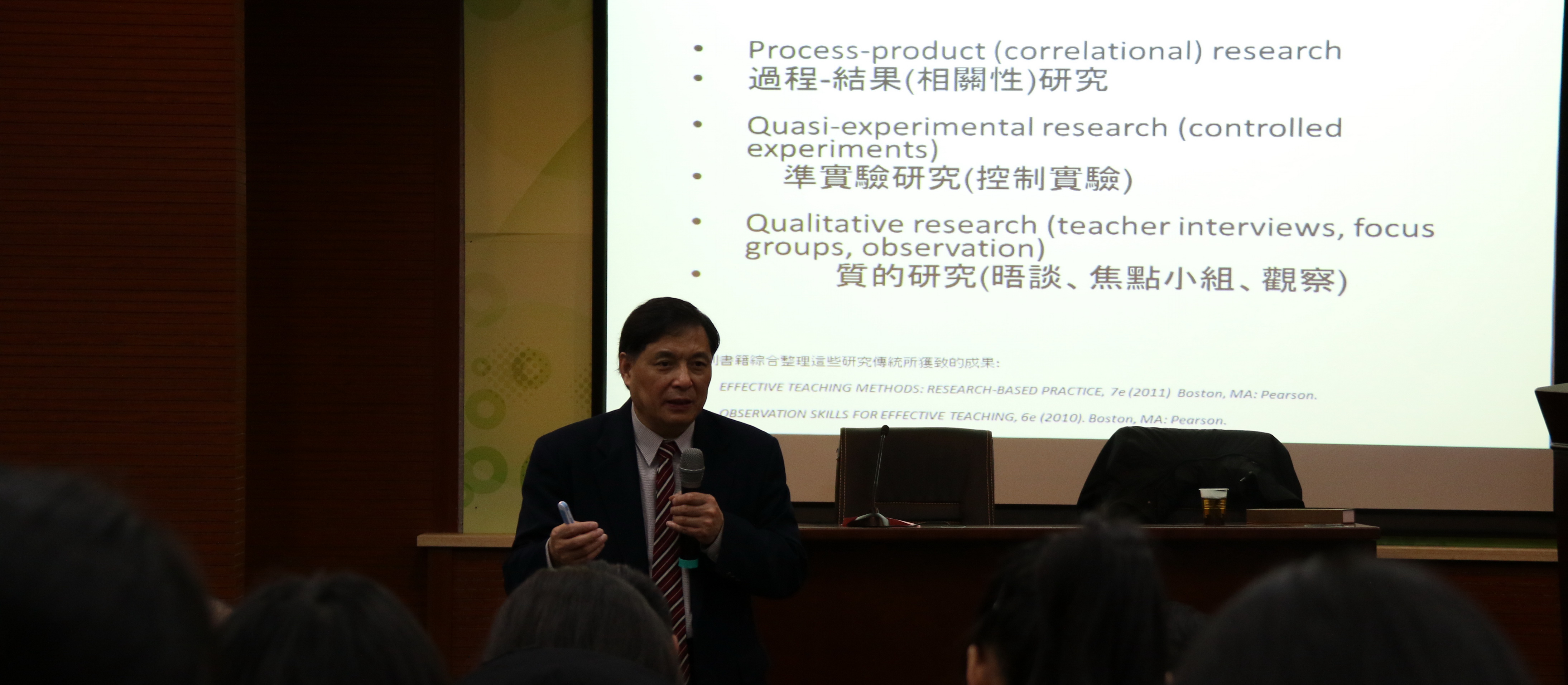 讲座主题为“美国40年有效课程教学的研究和启示”。讲座之前,严文蕃教授带领大家回顾了三种教育研究方法,分别是相关性研究、准实验研究、质的研究。接着,基于上述的研究方法,严文蕃教授从有效教学策略、有效管理策略、有效课程设计策略三个方面为大家解析了有效课堂教学的秘密。严文蕃教授先从教学策略入手,与大家共同探讨中美双方在考试制度、师生互动等方面的不同。然后通过美国学生有效学习时间的统计图、中国的大班教学与美国的小班教学对比、课堂气氛的维度划分来分析美国教育管理策略的优点及其问题。最后严文蕃教授给大家分享了有效课堂的课程设计,以实际案例和大家热烈探讨了中美整合课程的差异,并提出了问题和建议。