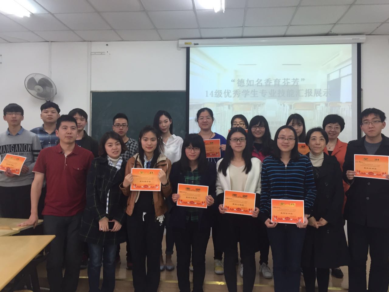 为我院本科生提供展示自我风采的舞台,通过以赛促练,带动和促进学院本科二年级师范生专业技能训练工作的深入开展,提高学生教学技能创新实践能力,4月20日下午13时,在奉贤校区五教B座212教室,我院成功举办“德如名香育芬芳”2014级本科生专业技能汇报展示活动。本次活动邀请14级本科班级班导师董玲老师与叶勤老师、14级辅导员黄琼萃老师、许义老师担任比赛评委,学院本科二年级14个班级全体参加汇报展示。