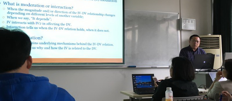 2016年5月9日-11日,美国奥本大学范津砚副教授受邀为我院师生开展了“中介与调节-心理统计检验”专题工作坊。工作坊由教育学院副院长石文典教授主持。教育学院青年教师、在读博士和硕士研究生,以及来自上海交通大学、复旦大学、华东师范大学等高校的青年教师参加了此次工作坊。
