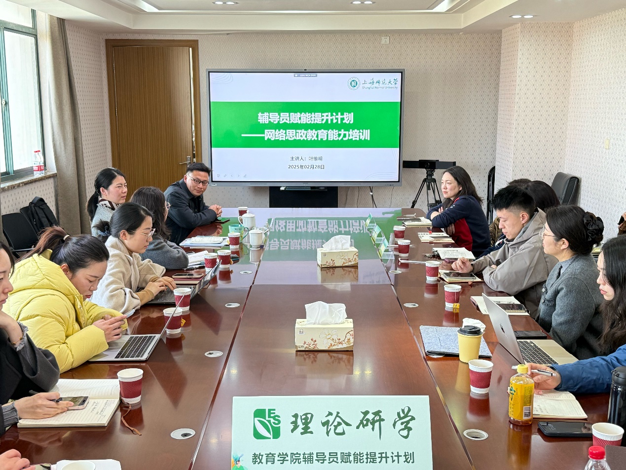为适应新时代思想政治教育工作的发展需求,进一步提升辅导员网络思政工作能力,2月28日上午,教育学院、学前教育学院、心理学院、马克思主义学院、音乐学院联合举办辅导员赋能提升计划——网络思政教育能力提升培训。本次培训邀请上海第二工业大学学生处思想政治教育科科长叶维明开展《 “从‘需’到‘为’:辅导员网络思政进阶之路”专题分享》。五个学院分管学生工作副书记、负责人和辅导员参加此次活动。