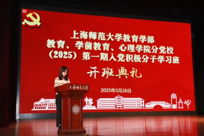 为进一步提升入党积极分子的思想觉悟和理论素养,坚定向党组织靠拢的决心和信心,3月26日下午,上海师范大学教育学部教育、学前教育、心理学院分党校2025年第一期入党积极分子学习班开班典礼暨专题党课在奉贤校区大剧院隆重举行,研究生入党积极分子在徐汇校区教苑楼C座多功能厅同步观看。心理学院党委书记张益,各学院党委组织员、随班班主任出席本次开班典礼。伟德国际BETVlCTOR党委组织员翟福玲主持。