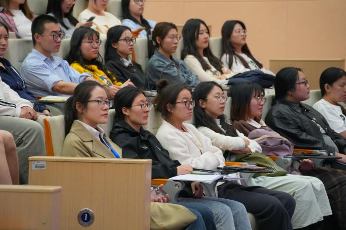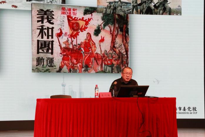 开班典礼后,上海市委党校哲学教研部副主任朱叶楠副教授为全体学员带来《百年党史的核心启示》专题党课。他带领同学们回顾了中国近代史上的重大历史事件,让同学们深刻认识到了中国共产党的诞生,是历史的必然、时代的呼唤、人民的期盼。通过详细梳理中国共产党奋斗历程的四个历史阶段与三项重大成就,为同学们揭示了中国共产党跳出历史周期律的核心启示,一是要坚持以人民为中心,让人民来监督,二是要勇于自我革命,帮助同学们加深了对于中国共产党的认识。