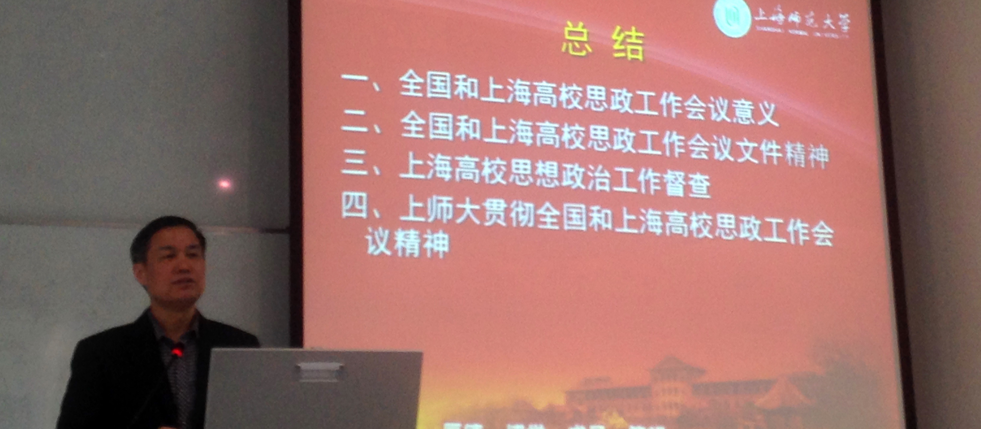 4月26日下午,教育学院召开党员学习会,学习贯彻落实全国、上海和我校高校思想政治工作会议精神。会议邀请全国教学名师、我校马克思主义中国化理论课教师汪青松教授作题为“全员全方位全过程加强高校思想政治工作”的专题报告。报告会由学院党委书记徐晓明主持。