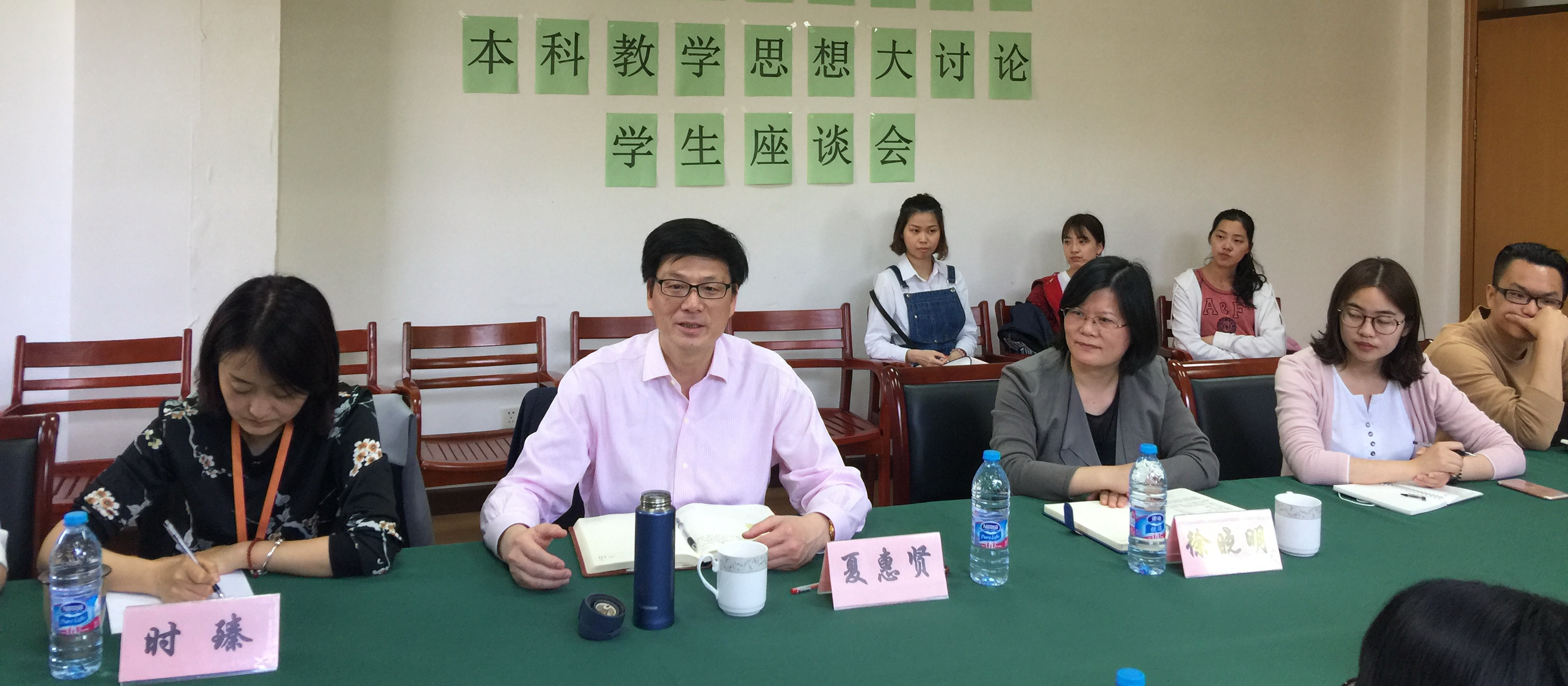 2017年5月9日下午,教育学院党委书记徐晓明、院长夏惠贤,党委副书记、副院长时臻前往奉贤校区,参加我院本科教育教学思想大讨论学生专场座谈会。来自我院本科各年级20余名学生代表以及辅导员老师参加。