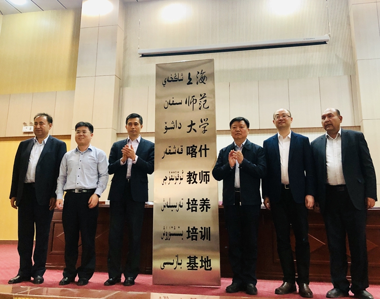4月13日下午,张峥嵘代表我校与新疆喀什地区行政公署、上海援疆前方指挥部共同签署了“联合建设喀什地区教师培训中心(上海师范大学喀什教师培养培训基地)的协议”。党委书记滕建勇、副校长张峥嵘、上海援疆前方指挥部副总指挥胡章萍、喀什地区地委教育工委副书记唐晓冰、喀什地区教育局局长艾尼瓦尔•阿不利米提、喀什地区教师培训中心主任麦麦提江•艾萨主任共同为中心揭牌。