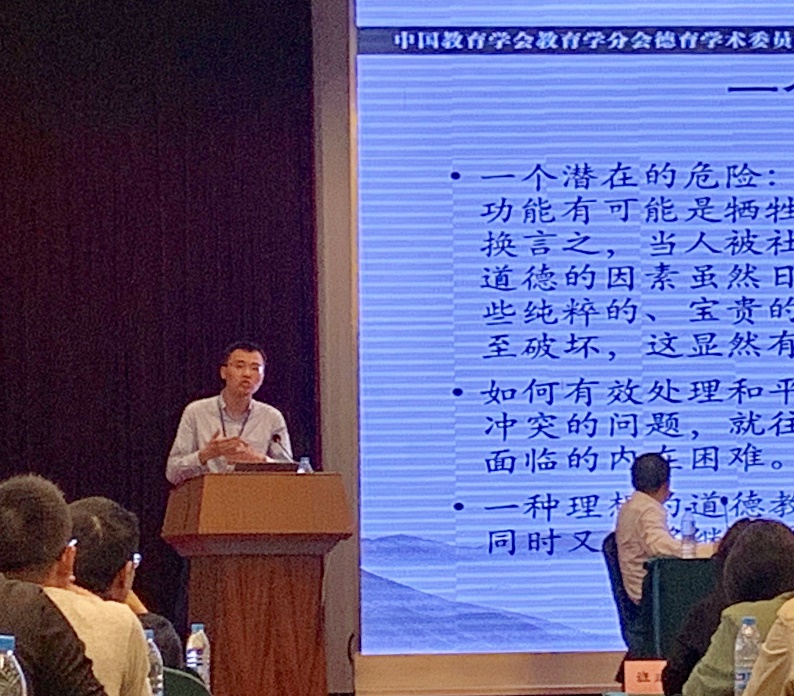 此次年会对荣获2019年“中青年年度德育论文奖”的师生进行了隆重表彰。我院胡君进博士的论文“道德教育作为一种人性平衡术——一种对于德育本质的卢梭式探讨及其启示”荣获教师组一等奖,并在大会做专题报告。论文对大家耳熟能详的卢梭教育思想做了崭新的探索,获得评审专家和与会人员的高度称赞。