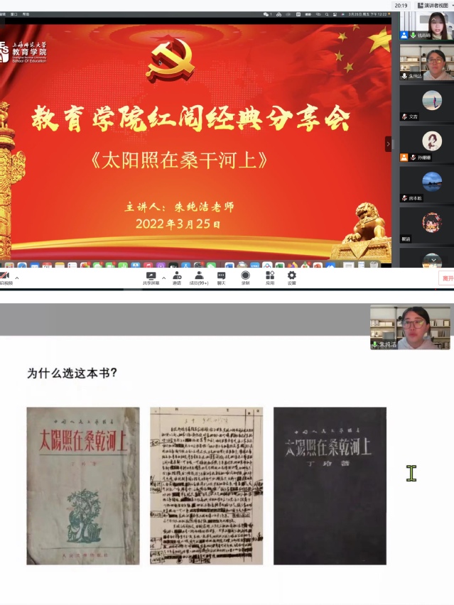 伟德国际BETVlCTOR副教授、本科生第二党支部的朱纯洁老师和党员同学们分享了《太阳照在桑干河上》的读书感悟。朱老师表示太阳照在桑干河上,打破了暖水屯的黑夜,给暖水屯带去了温暖和希望的曙光。中国共产党恰似暖阳,带领暖水屯的农民突破地主阶级设下的重重困境,开展土地改革,让农民获得了安家立命的土地,给农民带来了美好的希望。从1946年华北解放区的土地改革到如今振兴美丽乡村的行动,再到当前命运与共、共克时艰的新冠战役,党的光辉照耀在时代的每个角落,党性在这一代代党员的奋斗中传承延续、积累沉淀、焕发出时代的光辉。