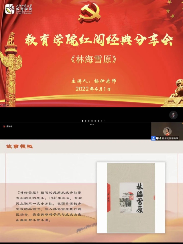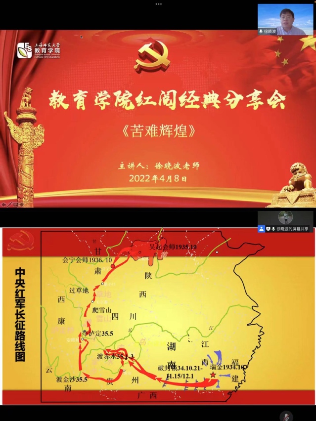 自党史学习教育开展以来,教育学院党委创新学习方式,相继开展《红阅经典》分享会4期,推动党史学习教育深入广大学生党员,引导青年党员从革命前辈和师德楷模中汲取精神力量,弘扬红色传统,传承红色基因。在疫情防控特殊时刻,教育学院如期通过腾讯会议平台,开展了三场《红阅经典》分享会,每场近200余名学生党员参加。担任主讲人的是三位派往学生党支部开展工作的优秀青年党员老师。