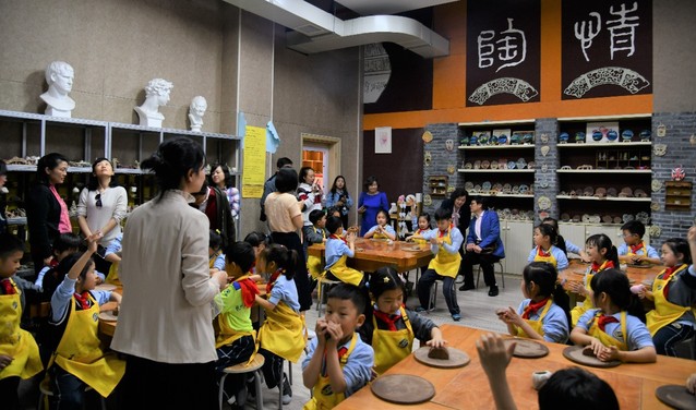 研修班学员考察的第二站是建德市明珠小学。明珠小学是一所公办小学,学校以多元智能理念为引导,关注学生人文精神和科学精神的发展,同时通过环境教育、艺术教育、科学教育、社会实践活动以及校本课程,使学生快乐学习,促进每一位学生的发展。研修班学员在许杏芳校长的带领下,参观了学校的红领巾气象站,专业老师为学员们讲解了小小气象站的功能及与学生活动课程的关系;由剪纸非遗传承人王介明老师带领学员们参观了由其设计的剪纸课程以及剪纸工作室;泥塑老师为学员们讲解了泥塑特色课程的设计等。明珠小学为每一个学生发展所创设的特色课程给学员们留下了深刻的印象,学员们纷纷表示获益匪浅。