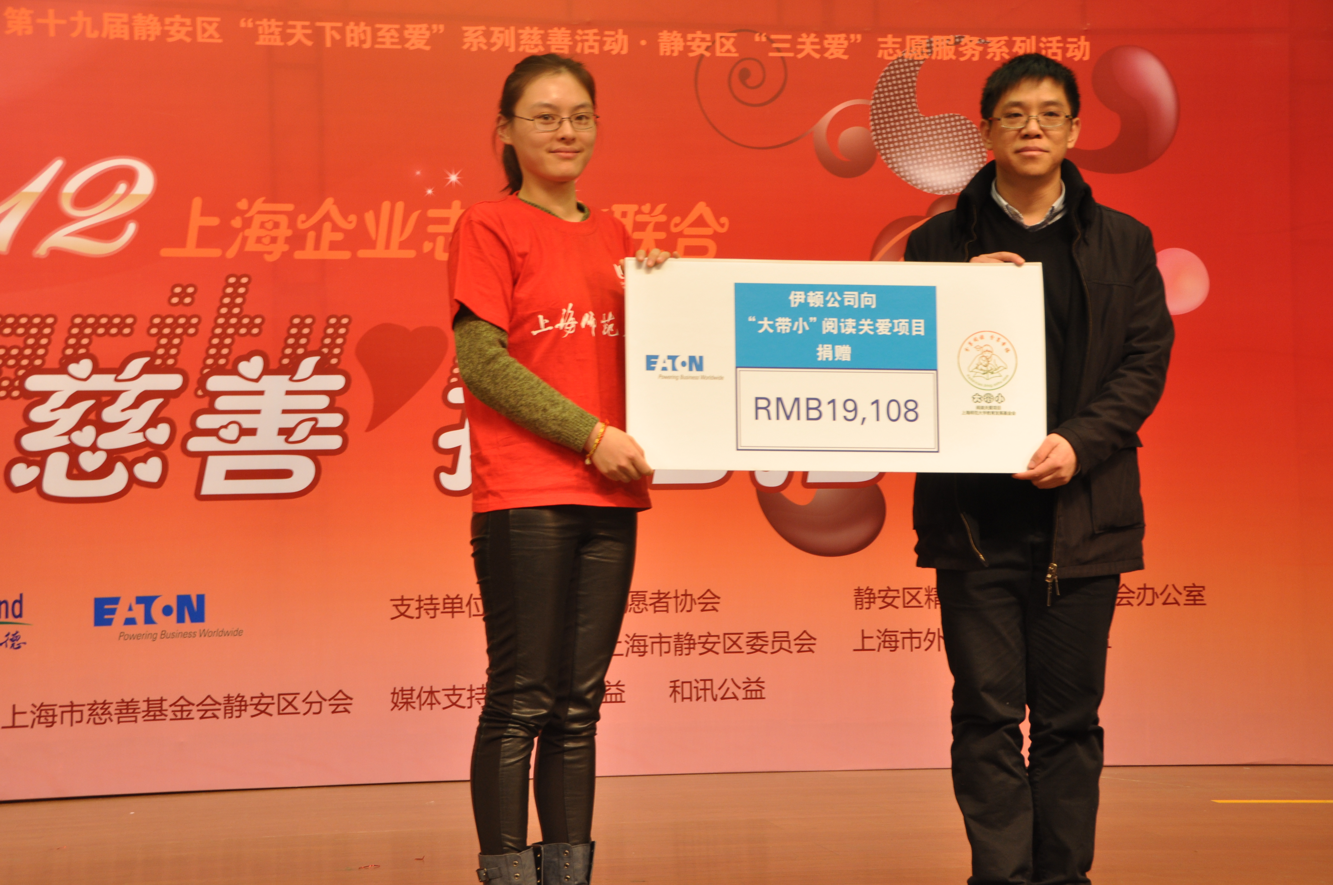 2012年12月8日,我院“大带小”儿童课外阅读关爱项目,在2012上海企业志愿者联合“慈善拍拍拍”活动上,获得世界五百强伊顿公司捐赠善款近2万元。