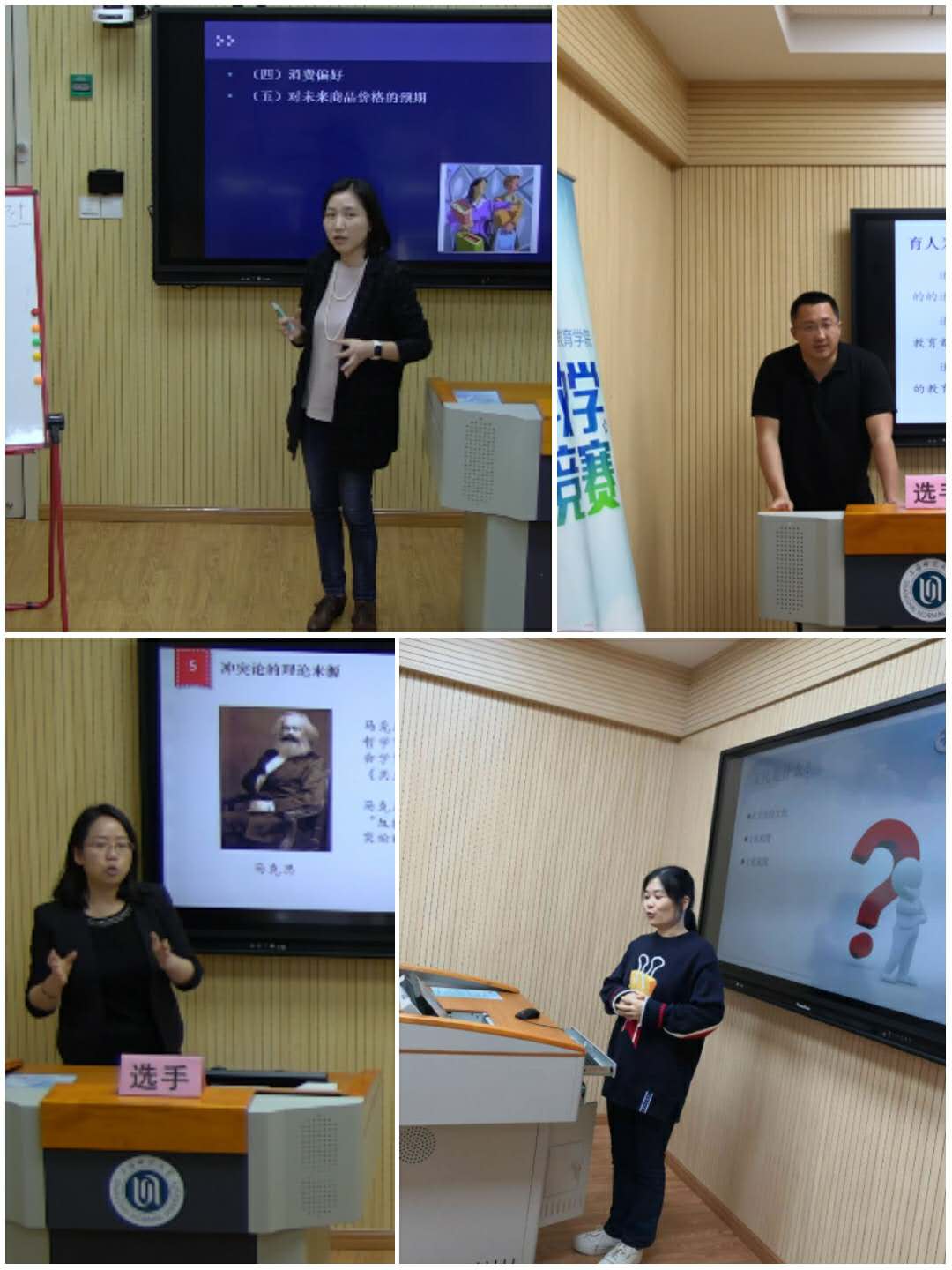 比赛当天,选手们都能自信、自如地进行课堂教学展示,并进行教学反思,充分展现了我院青年教师的风采。
