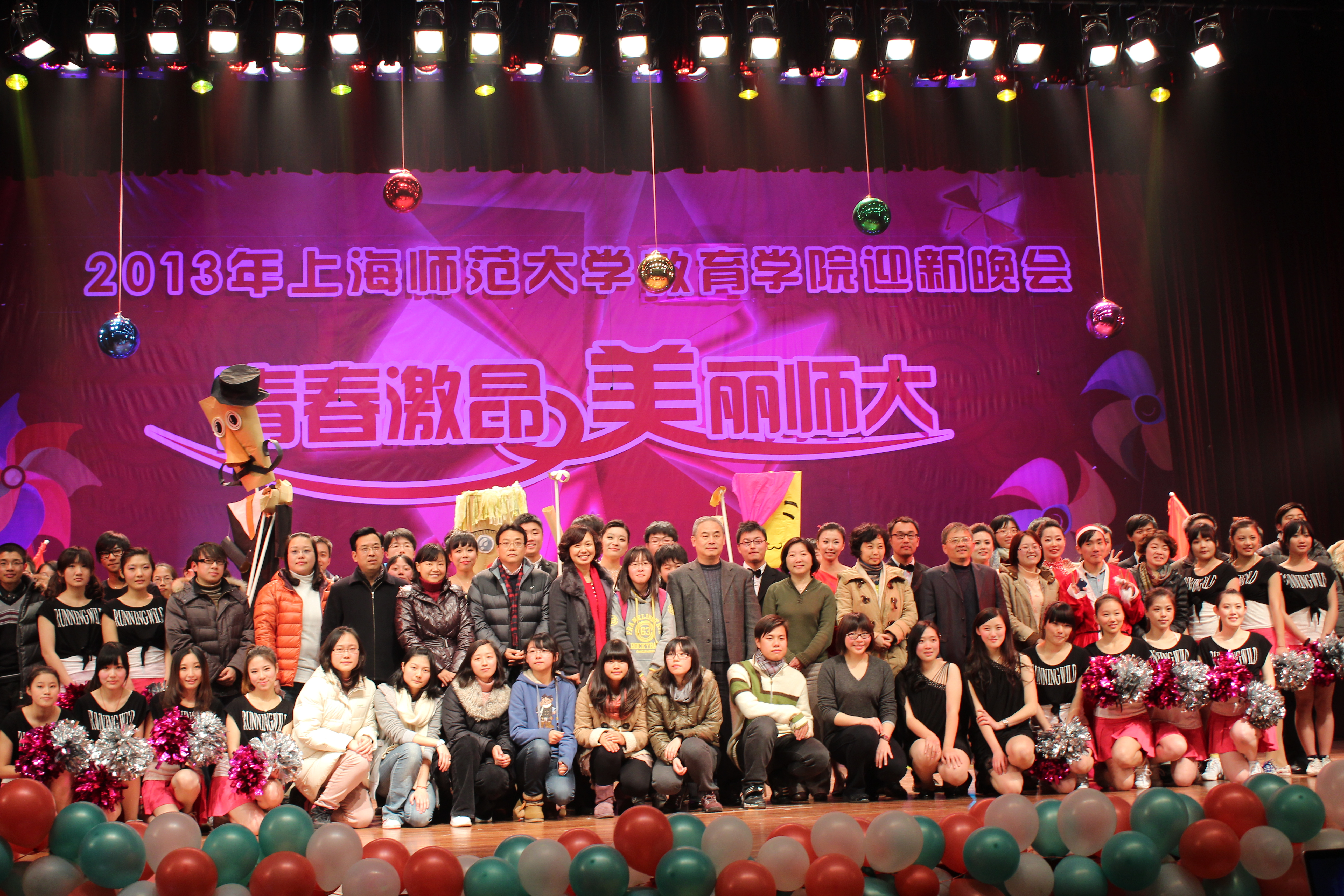 2012年12月25日,教育学院2013年“青春教响曲”迎新晚会在上师大剧院成功举办。莅临本次晚会的领导和嘉宾有上海师范大学学工部部长张文潮老师,教育学院党委书记周银娥老师,教育学院院长陈永明老师,教育学院副院长高湘萍老师,教育学院党委副书记段鸿老师,教育学院党委副书记、副院长谢青老师以及各专业负责老师。此外,参加晚会的还有各兄弟学院的团委负责老师和教育学院各年级的辅导员老师。