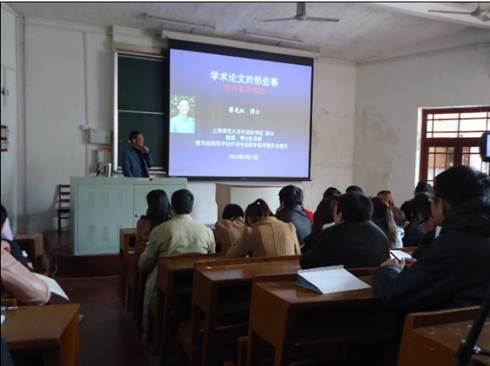 2013年3月21日下午,我校外国语学院院长、教育部高等学校外语专业教学指导委员会委员蔡龙权教授做客我院“教育科研方法论”讲坛,为2012级两百多名研究生做了一场题为“学术论文的那些事——你可能不知的”精彩演讲。