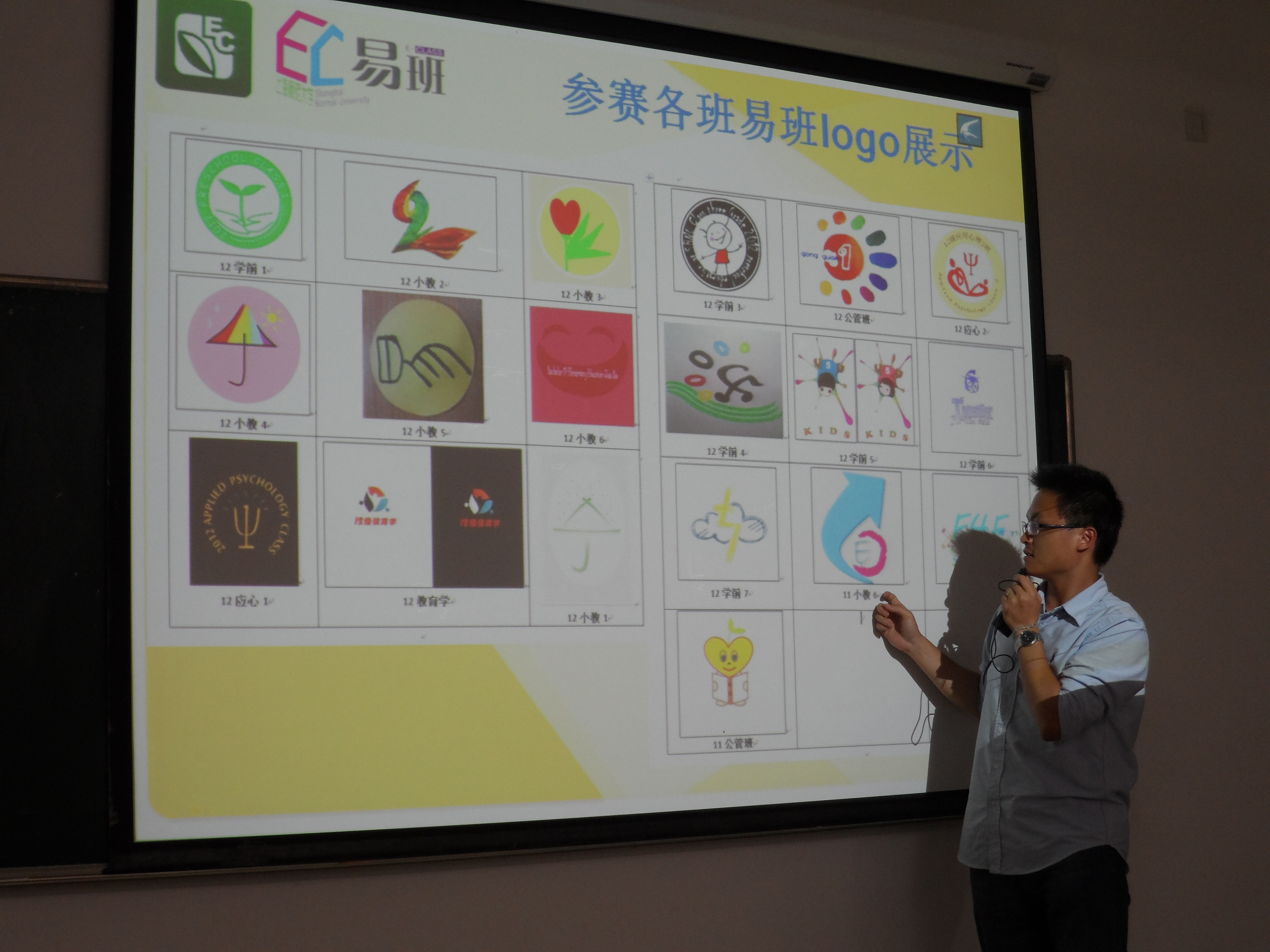 5月22日当晚,参赛各班同学代表通过精美的PPT展示了本班易班logo的创作情况,每一个logo都洋溢着创意和集体智慧,不少班级设计的易班logo都很好地融入了专业、班级和易班文化元素。12级小学教育2班的易班logo是一只红绿相间的天鹅,热情与希望相结合,寓意着着放飞梦的翅膀,给孩子自由飞翔的力量。12级学前3班的logo则以一个简笔勾勒出的张开双手的女童为核心内容,象征着童真、快乐和温暖,与专业特点非常契合。12级教育学班的设计则采用黑白两色为底色,中心图案简约大方却寓意丰富,整个设计沉稳、悦目,他们还用logo制作了时尚美观的班服。12级小教1班的logo虽然设计简单,却巧妙地诠释了本班的名称、人数和特色。其他各班的设计也都有独特的创意和亮点。