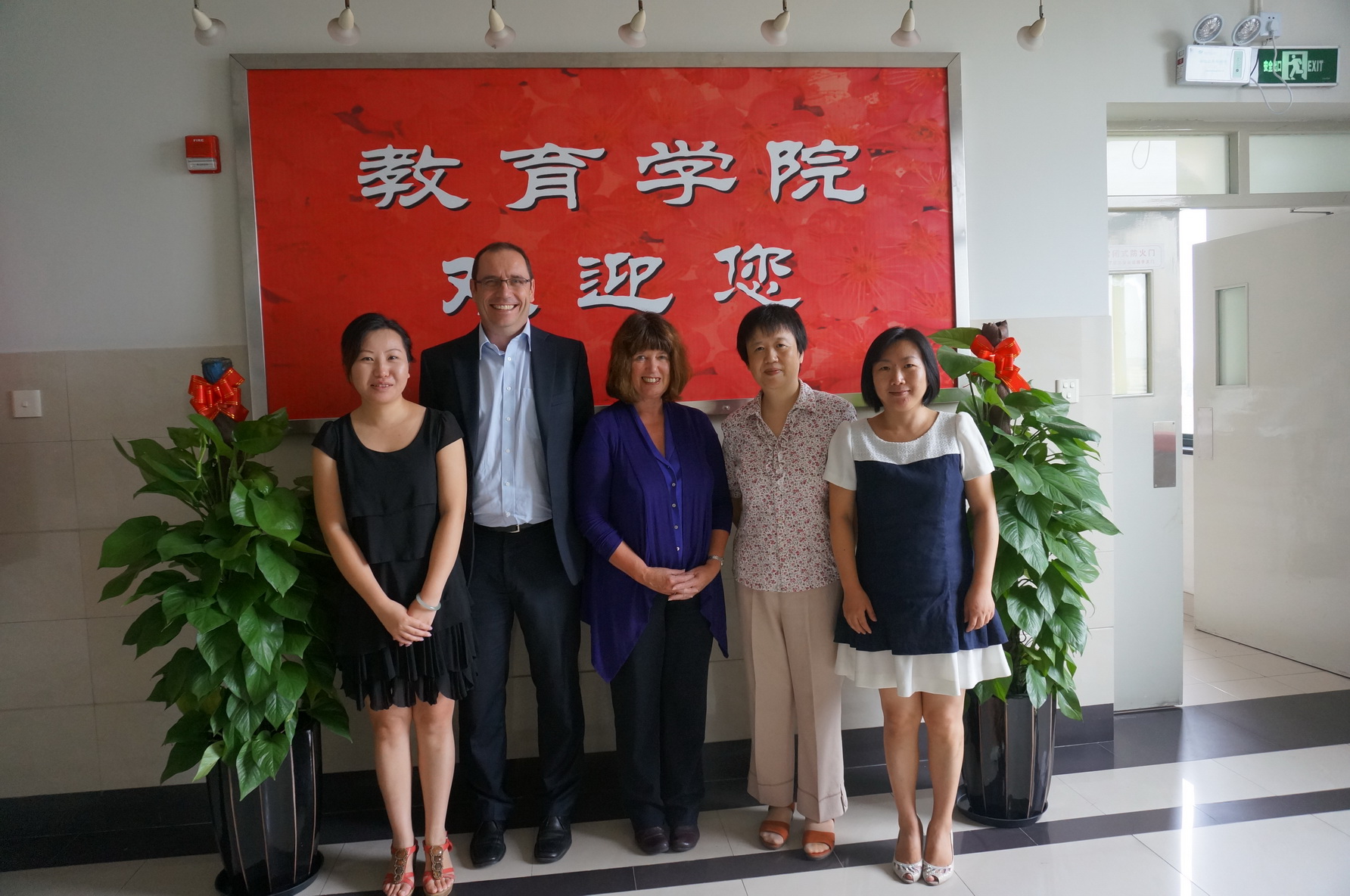 2013年9月19日上午,英国诺丁汉大学教育学院院长Christine Hall和Howard Stevenson教授来我院进行交流访问。上午九点,夏惠贤院长在教苑楼704主持交流会并向他们介绍了我院的基本情况。丁炜副院长、吴念阳副院长、学前教育系系主任李燕教授、管理系教师徐瑾劼陪同接待。