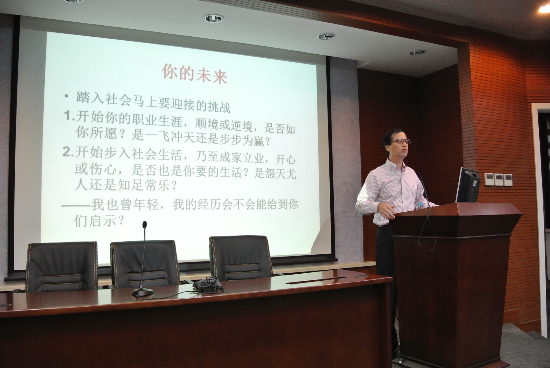 10月8日,我院应用心理系兼职教授、珠江人寿股份有限公司总裁胡国萍先生应邀为我院学生开展了一场以“我的职涯,你的未来?”为主题的职业生涯规划讲座。
