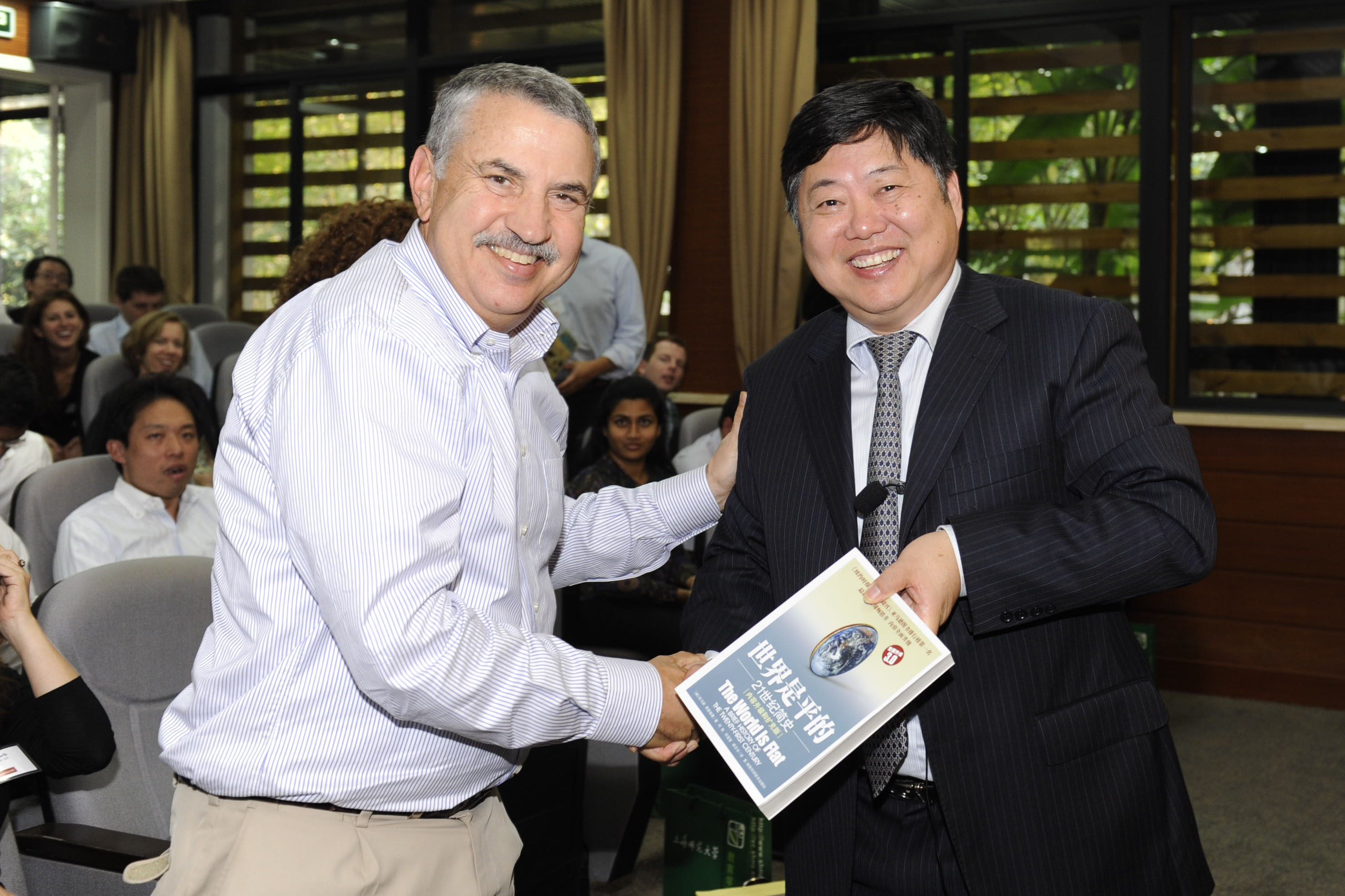 《世界是平的》的作者托马斯﹒弗里德曼(Thomas L. Friedman)也出席了讨论会并聆听了张校长的演讲。