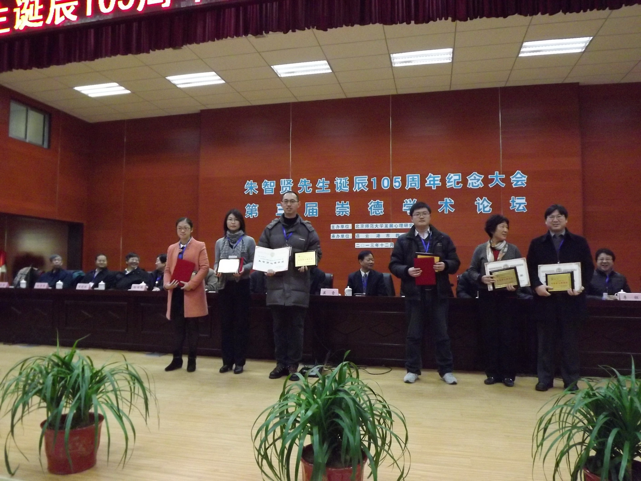 近日,“朱智贤先生诞辰105周年纪念大会暨第三届崇德学术论坛”在朱智贤先生家乡江苏省连云港市赣榆县举行,我院心理系卢家楣教授、蔡丹副教授等老师出席了此次纪念大会及学术论坛。教育部基础教育二司副司长申继亮,中国心理学会前理事长莫雷教授等国内近60位专家学者及500多名骨干教师参加了此次学术论坛。