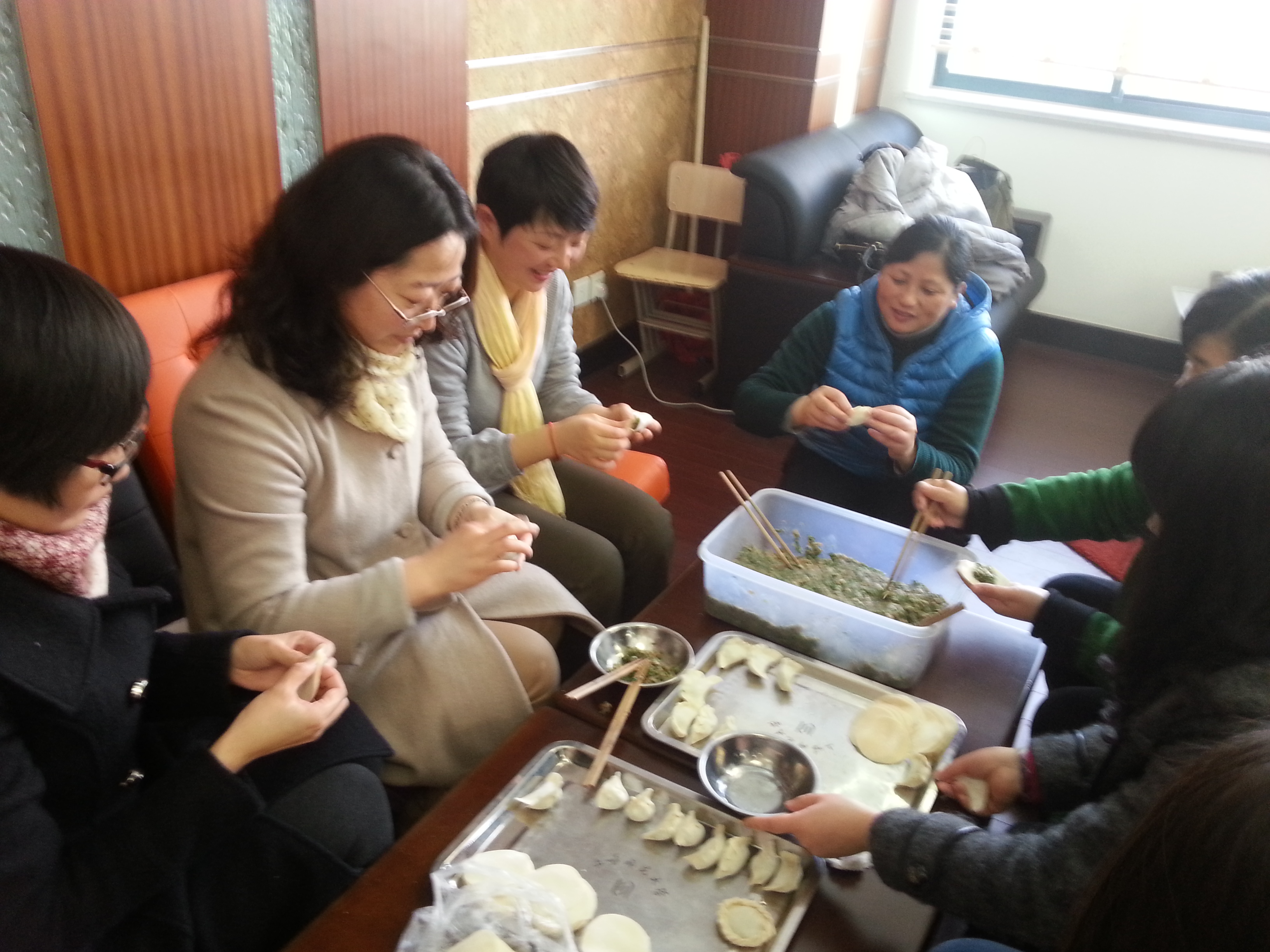 活动还安排了现场包饺子环节,老师们纷纷参与,有的包、有的煮,有的教,有的学。现场还有不少男教师前来捧场帮忙,端盘送碗,忙得不亦乐乎。在温馨欢快的气氛中,老师们一边观摩、品尝,一边分享自己的烹饪心得,教工之家呈现一派热气腾腾的合家氛围。