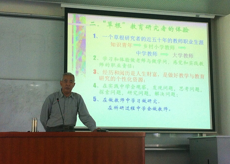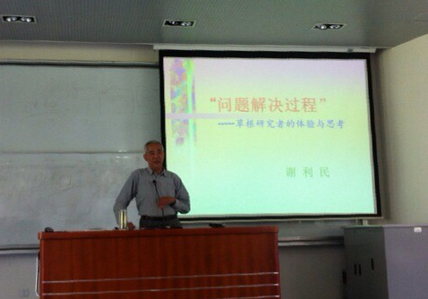 522日下午,我院在四教201教室举行了第十一场“学术前沿”专题讲座。博士生导师谢利民教授为2013级近200名硕士、博士研究生做了题为“‘问题解决过程’——草根研究者的体验与思考”的学术报告。