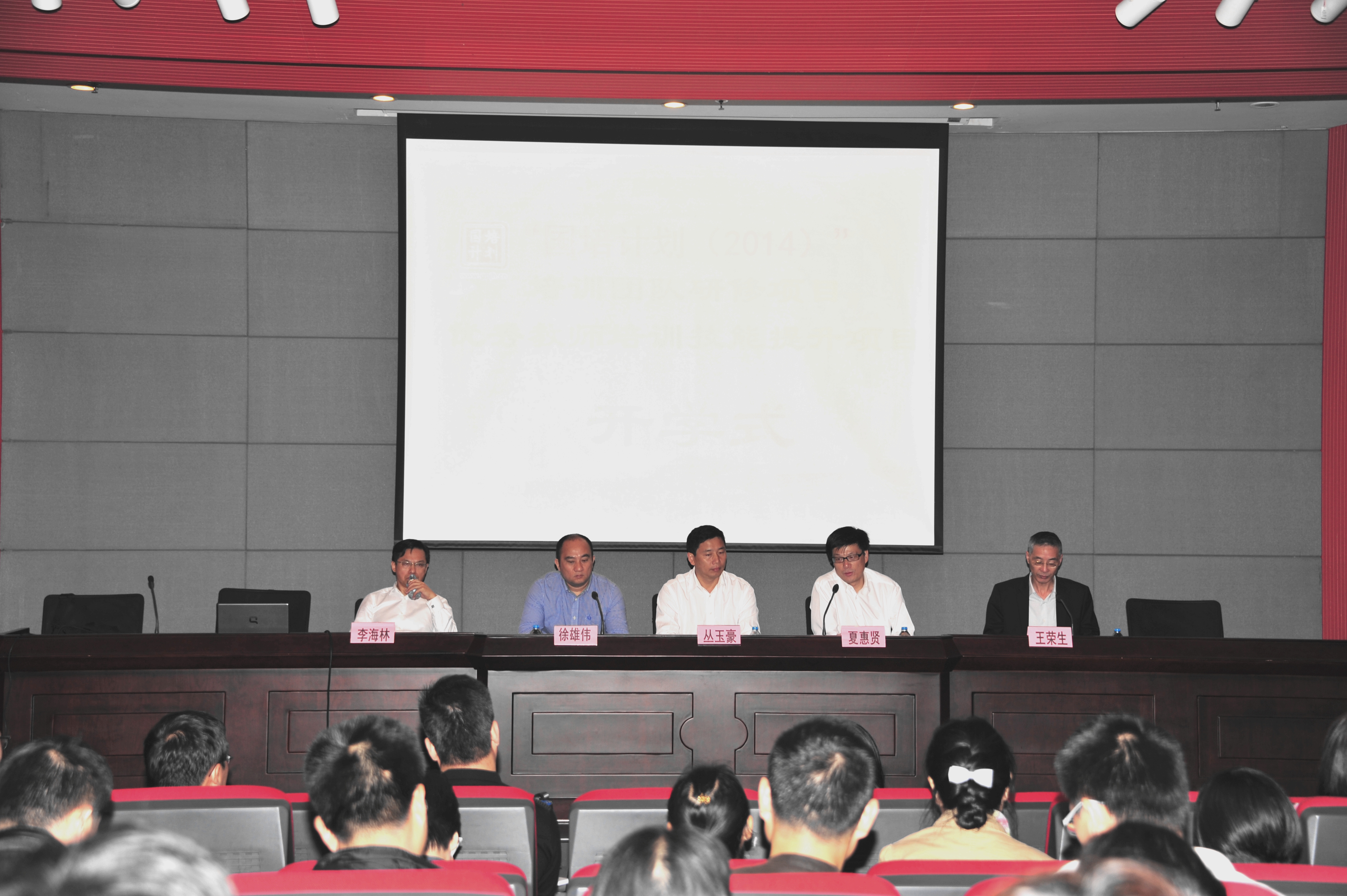 2014年10月13日,“国培计划(2014)”——示范性集中培训项目第一批培训班—— “国培计划(2014)”—培训团队研修项目语文学科高等学校骨干培训者班和“国培计划(2014)”—一线优秀教师培训技能提升研究项目初中语文骨干教师班在上海师范大学徐汇校区西部会议中心隆重举行开班仪式,来自全国各地的100名“国培计划”学员开始了为期10天的培训。我校丛玉豪副校长,我院夏惠贤院长、徐雄伟副院长以及项目首席专家王荣生教授、李海林教授出席开班仪式,仪式由长徐雄伟副院长主持。