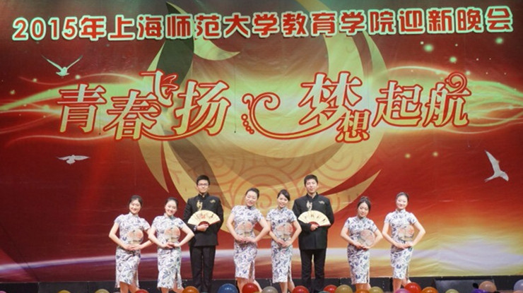 2014年12月24日,我院“教相辉映 育德馨章”2015年本科生迎新晚会于奉贤校区上师大剧院隆重举行。莅临本次晚会的嘉宾有校学工部副部长柏桦老师,校团委副书记万瑾老师,校团委副书记傅昕源老师,教育学院党委书记周银娥老师,教育学院副院长吴念阳老师,教育学院党委副书记、副院长谢青老师,教育学院办公室副主任张裕萍老师。
