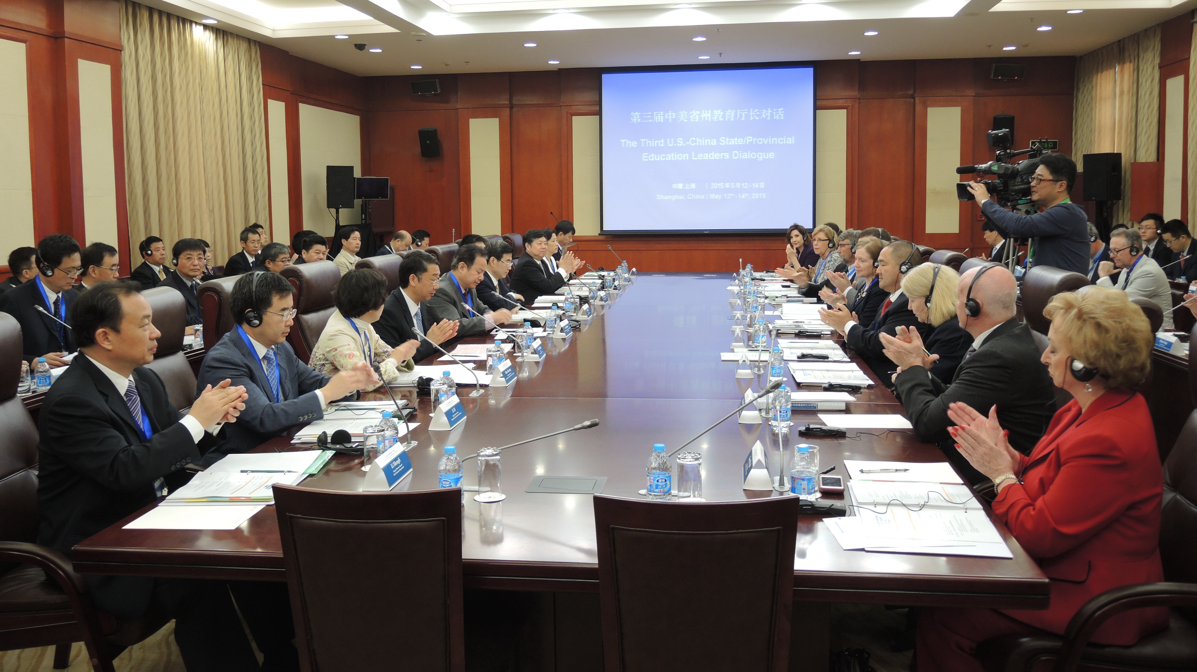 2015年5月12-14日,第三届中美省州教育厅长对话会议在上海科学会堂举行。会议由中华人民共和国教育部和美国教育部主办,中国教育国际交流协会、上海市教育委员会、美国州首席中小学教育官员理事会、亚洲协会等四家单位协办,上海师范大学承办。北京、上海、河北、吉林等十七个省市的教育厅长与来自怀俄明、华盛顿、阿拉斯加、俄克拉荷马、蒙大拿、西弗吉尼亚、堪萨斯、密西西比等八个美国州教育厅长,就教师专业发展、学生评价、学生职业素养、教师领导力与评估等议题展开讨论。美国向前学习(Learning Forward)、上海市教育科学研究院、伟德国际BETVlCTOR等中美教育研究和支持机构参会。我院夏惠贤院长、胡国勇副院长、张民选教授、宁波博士、王友缘博士、周晓璐博士、宋庆清老师和博士研究生陈慧参与部分议程的讨论。我院研究生为会议提供志愿者服务。