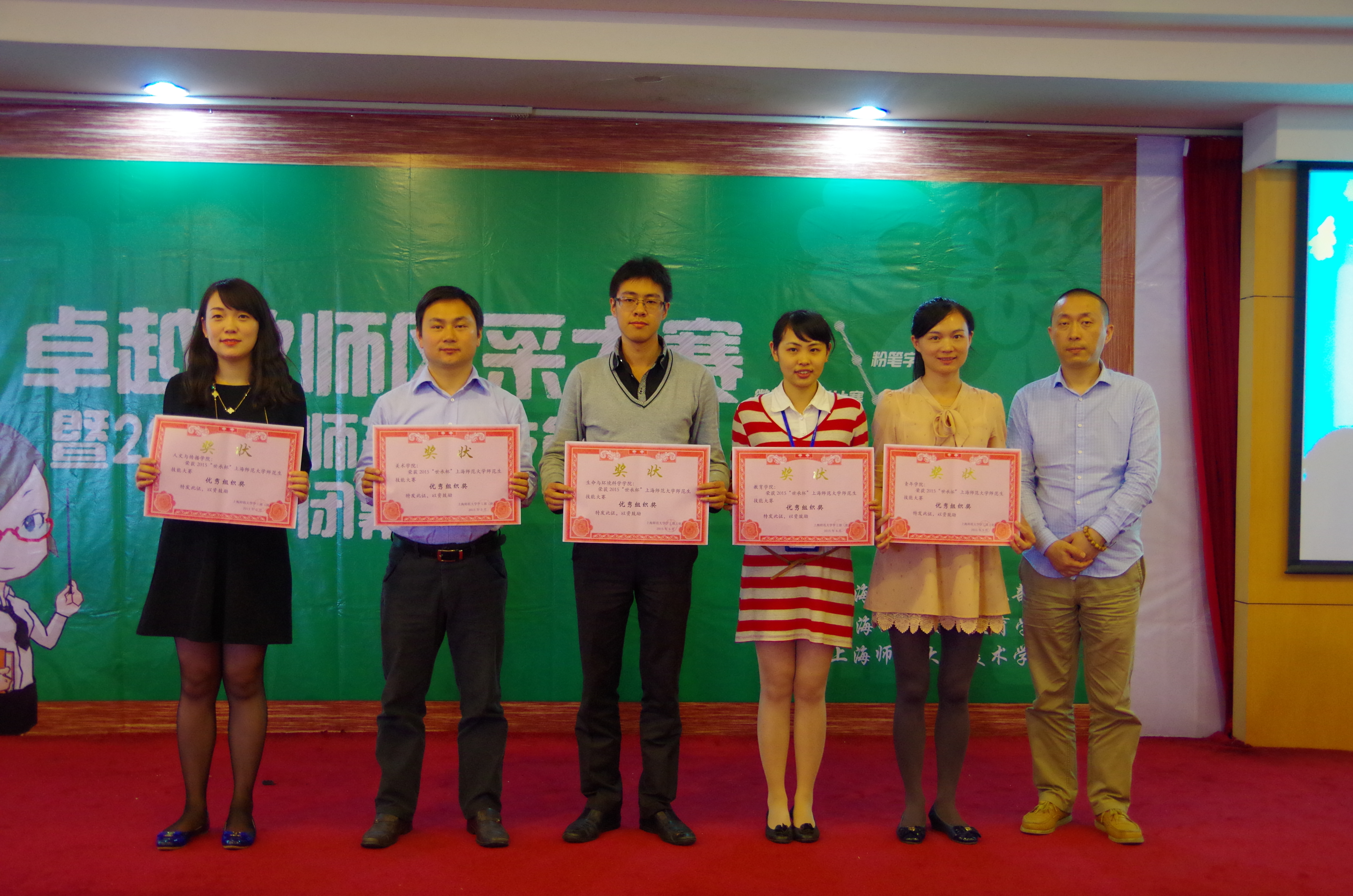 6月3日下午13:30,2015年“世承杯”师范生技能大赛之卓越教师风采大赛暨2015年上海师范大学“世承杯”师范生技能大赛闭幕式在奉贤校区图文信息中心九楼报告厅举行,各学院师生200余名代表出席了此次活动。本次比赛特邀了上海市中小学班主任工作室负责人洪耀伟老师,黄浦区班主任工作能手、黄浦区园丁奖获得者、大同初级中学语文骨干教师陈涛老师,以及我院初教系副系主任钟文芳老师担任本次卓越教师风采大赛的评委。