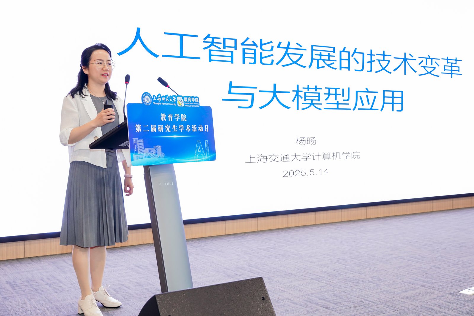 开幕式后,杨旸教授作“人工智能发展的技术变革与大模型应用”主题报告。杨教授在机器学习、数据挖掘等领域成果卓越,她系统梳理人工智能发展脉络,深入解读技术变革趋势与大模型应用前景,为师生后续开展相关研究拓宽视野、提供创新思路与实用方法论。