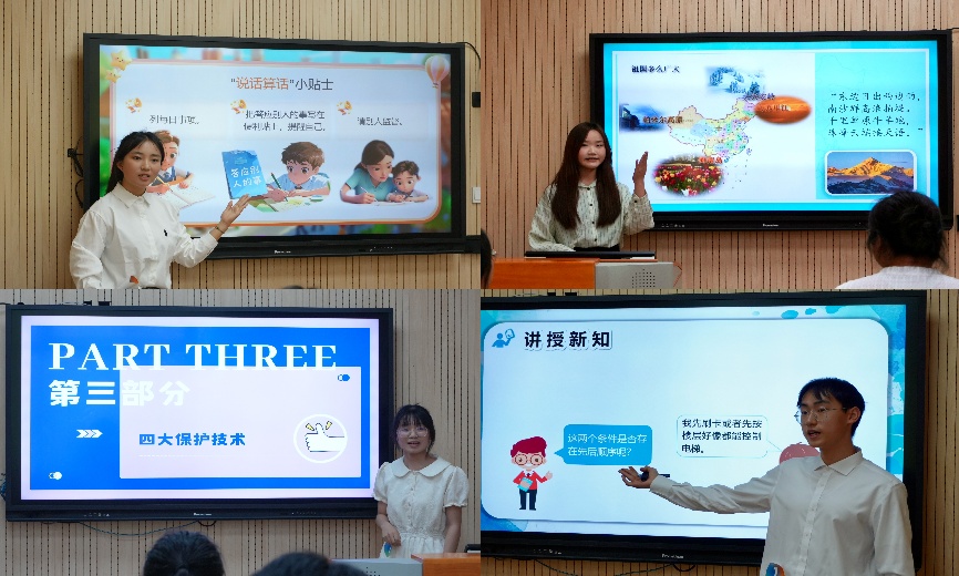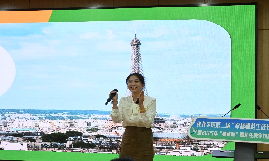 仪式结束后,2025年“师承杯”师范生教学技能大赛决赛正式拉开帷幕。本届赛事吸引202名学子踊跃参与,经严格遴选,65名学子晋级决赛。决赛通过模拟授课与现场答辩两大环节,全方位考察选手的教学设计、课堂互动及应变能力。参赛者以饱满的热情、创新的教学手段,彰显了教院学子锐意进取的精神风貌。评委团从专业角度进行细致点评,为选手提供针对性指导。