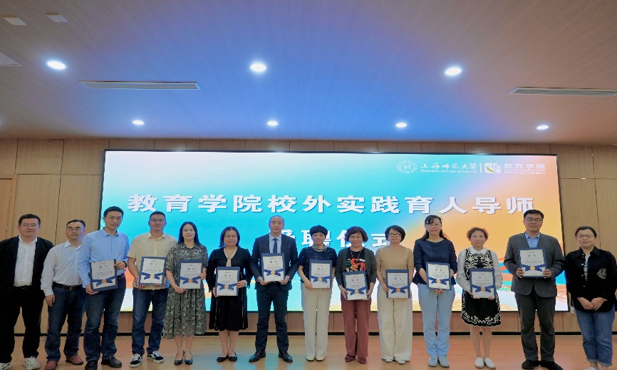 随后,校外实践育人导师聘任仪式举行。校教务处副处长杨帆,基础教育处副处长李晓芳,教育学院副院长阎亚军为来自上海基础教育一线的特级校长、名教师颁发聘书,进一步强化校地协同育人机制,推动师范生培养与一线教学需求精准对接。