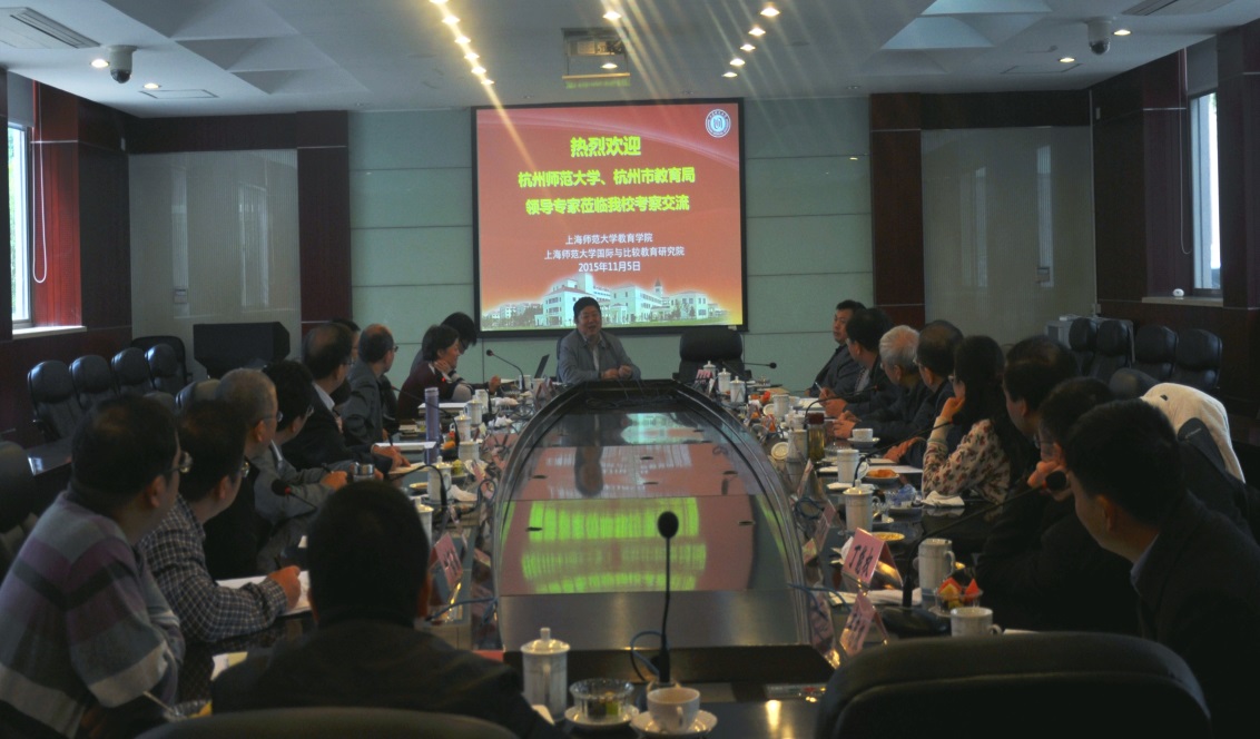 2015年11月5日,杭州师范大学党委委员、副校长何俊,杭州市教育局副局长肖锋,杭州市教育局高师处处长孙青峰等一行20人来到上海师范大学,对上海市教师培训相关举措的经验和动向进行调研。教育学院院长夏惠贤,国际与比较教育研究院院长张民选、研究员王洁在外宾楼101会议室接待了代表团。