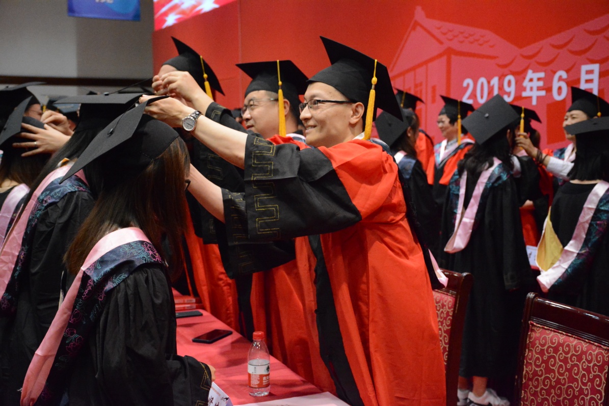 6月20日下午,教育学院2019届毕业生毕业典礼暨学位授予仪式在徐汇校区球类馆隆重举行。院学术委员会主任、学位评定委员会主任、院长、党委副书记夏惠贤老师,院学位评定委员会委员、党委书记徐晓明老师,副院长黄海涛老师,院学术委员会委员、管理系主任高耀明老师,院学术委员会委员、学位评定委员会委员、学前教育系主任李燕老师,院学术委员会委员、心理系主任李丹老师及学院各专业负责人以及各学科导师代表、教师代表、学生家长代表出席典礼。院学位评定委员会委员、党委副书记、副院长孙琳老师主持。