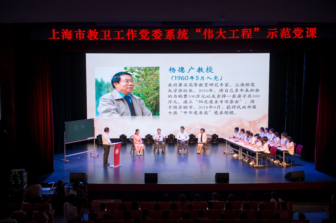 此次党课是上海师范大学党委根据《市教卫工作党委关于新时代基层党建质量提升工程的实施意见》,结合习近平同志对教育工作、对教师群体的重要指示和论述的精神,深入挖掘建校65年来,以“忠诚党的教育事业的教师队伍”示范培育“忠诚党的教育事业的基础教育教师队伍”的光荣师道传统、师道精神、师道文化而精心打造,由我院党委具体承办。