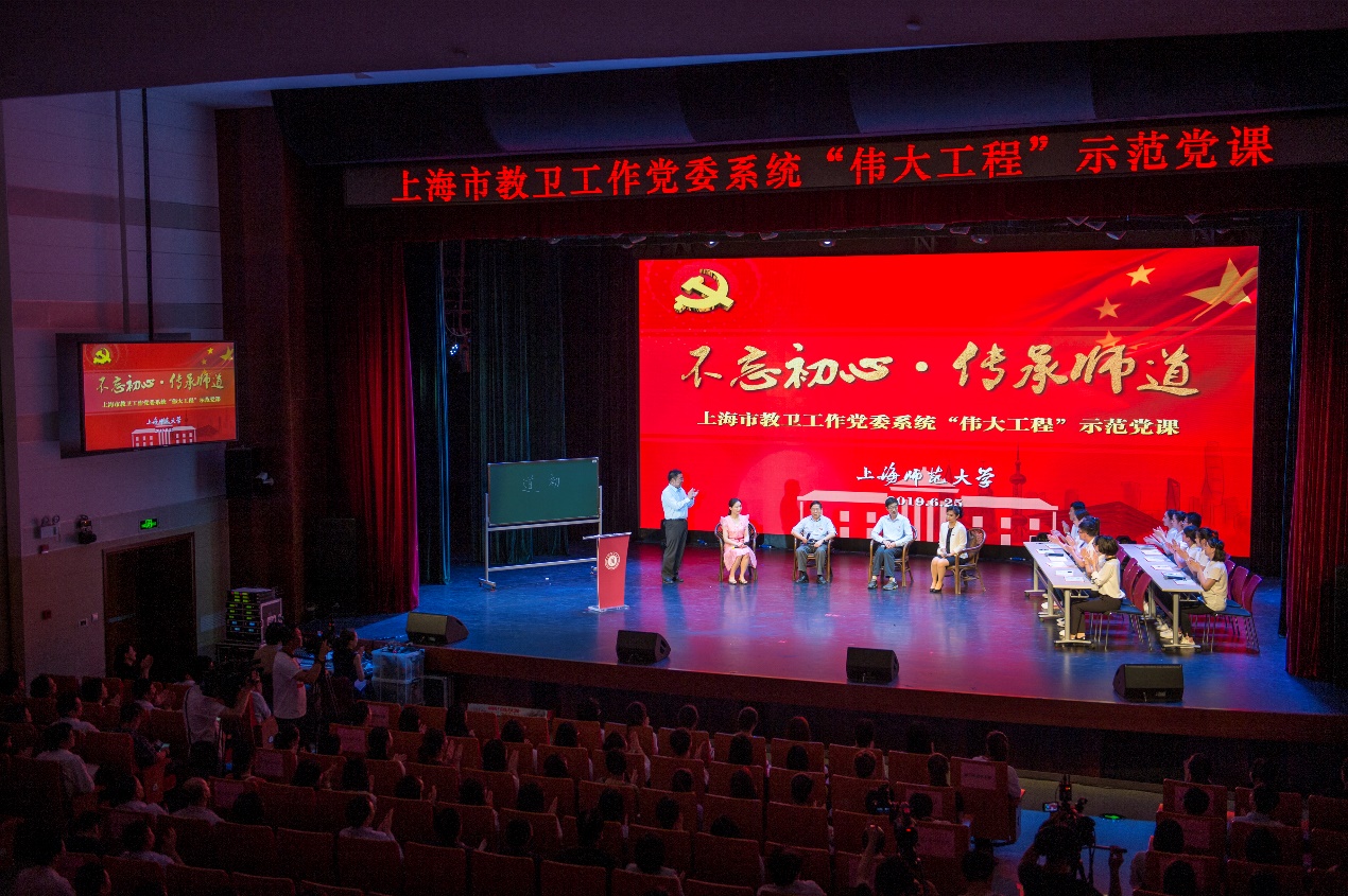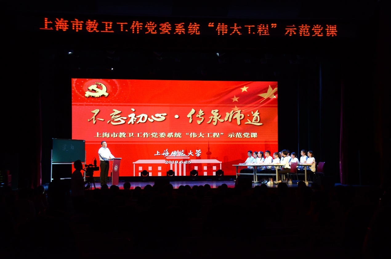 6月25日下午,上海市教卫工作党委系统“伟大工程”示范党课《不忘初心 传承师道》在我校东部音乐厅举行。市教委主任陆靖,市教委副主任蒋红、贾炜、毛丽娟、李永智、轩福贞、李蔚、杨伟人,上海师大党委书记滕建勇、副书记裴小倩出席。我院党委副书记、初等教育系主任王健老师担任主讲。来自本市教卫机关、基础教育界的党员代表以及校内各党组织的师生党员代表500余人参加。
