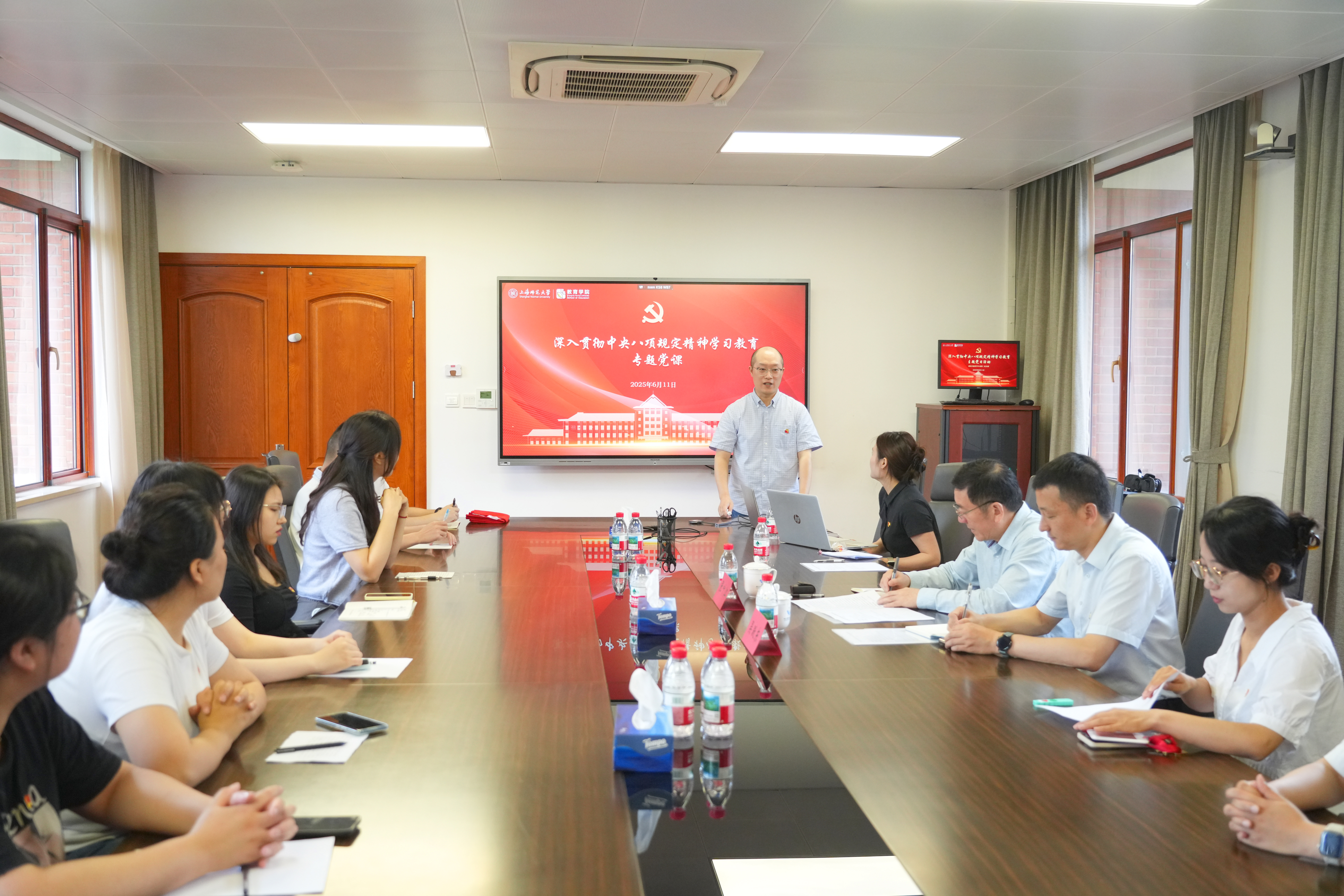 在交流研讨环节,支部党员围绕党课内容展开热烈讨论。多位党员代表结合参观于漪教育教学研究中心的所感所得,提炼出深刻的党性思考。支部党员李娅婷和许佳男谈到,在参观成果展的过程中,被于漪老师“一辈子做教师,一辈子学做教师”的箴言触动,于漪老师反复钻研教材、对教学精益求精的态度,“两把尺”的自我提升方法和尊重学生、因材施教的育人理念,正是中央八项规定精神的生动体现,只有像于漪老师一样将务实作风与信仰坚守融入日常工作,真正做到“知行合一”,方能不负时代与人民的重托。