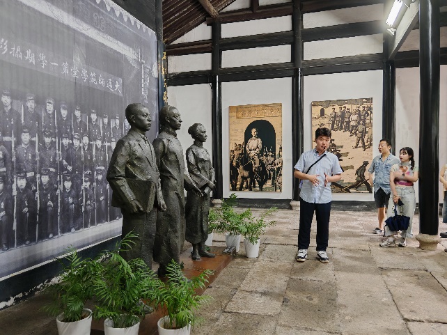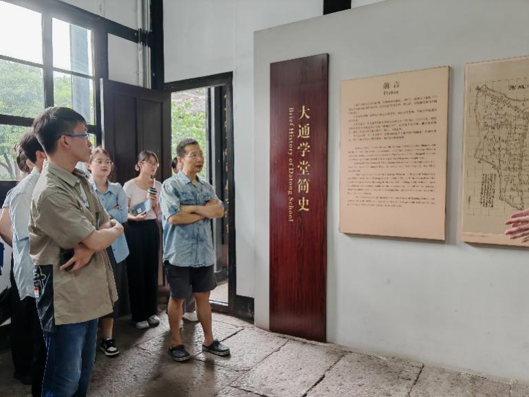 随后,师生来到大通学堂,由专业讲解员详细介绍了这所在中国近代师范教育领域独树一帜的教育机构。从课程设置到师资结构,从学生构成到思想启蒙,大通学堂作为教育改革的缩影,也是徐锡麟、陶成章、秋瑾三位优秀革命志士重要活动场所,在近代中国教育现代化进程中具有深远意义。同志们通过实地观摩与互动式讲解,深刻认识到教育家的双重使命以及其“以教兴革”的宏大理想。
