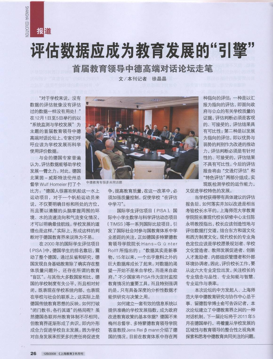 《上海教育》报道“首届教育领导中德高端对话”