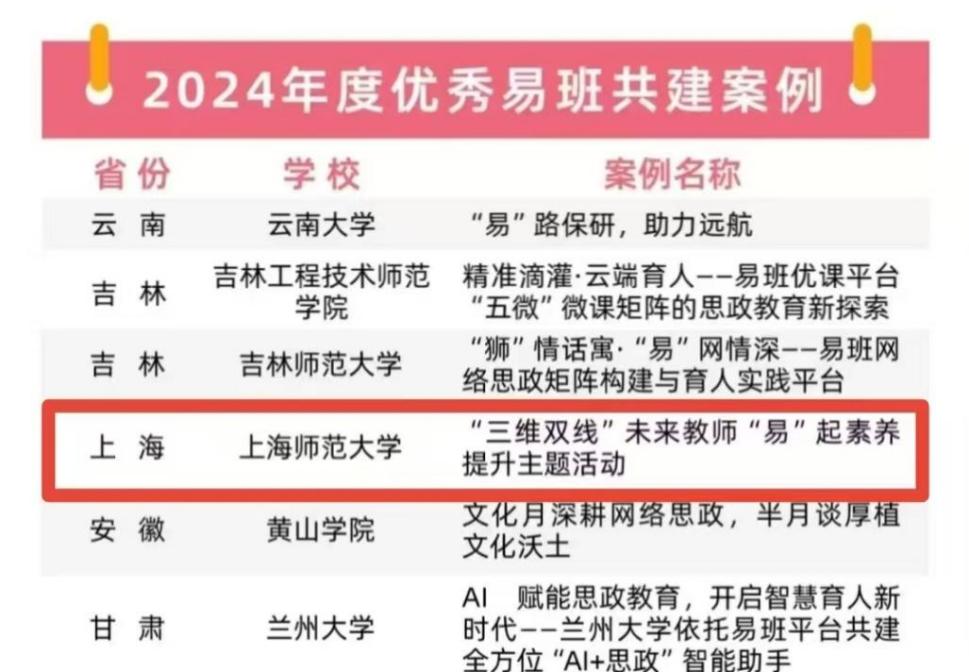 近日,教育部易班发展中心正式公布“2024年度全国易班共建优秀名单”,我院《“三维双线”未来教师,“易”起素养提升主题活动》在全国181份易班共建案例中脱颖而出,荣获“2024年度优秀易班共建案例”称号。